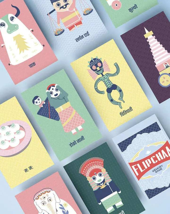 さまざまなネパールの文化を描いた楽しい絵合わせの神経衰弱カードゲームです。