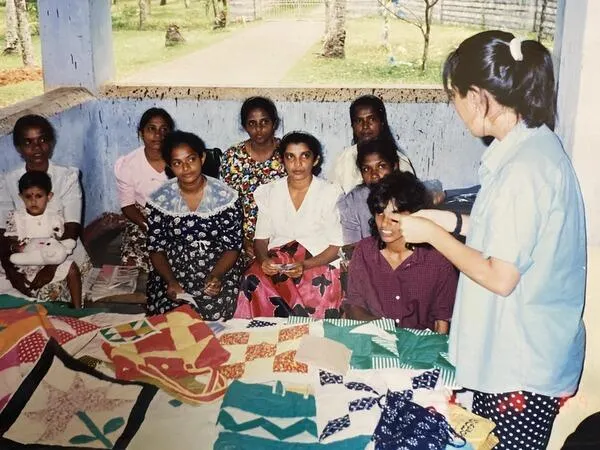 田舎の村に配属され、村人たちの要望に応えようと現金収入を得られるための小さなプロジェクトを始めました。パッチワークやキルティングの教室をお寺の一角を借りて行い、できたものを都市部へ販売に行くという行商です。今から30年も前のことですが、当時はパッチワークもキルティングもスリランカでは珍しく、とてもよく売れ、小さなプロジェクトはよいスタートが切れました。それもつかの間、卸先のお店が私たちが作ったものをすべてコピーして販売を始めたのです。「もう、いらないよ」と言われた時の衝撃は今でも覚えています。それでも、まねされないようにいい商品を作ろうと皆で頑張り、新しい卸先も増やし何とか続けました。村の女性たちだけで続けられる仕組みを整えて帰国したのですが、実際私がいなくなると、商品を買い取ってもらえなくなり、無理な値引きを強要される、商品を納めても代金を支払ってもらえない状況になり、継続できなくなってしまいました。
