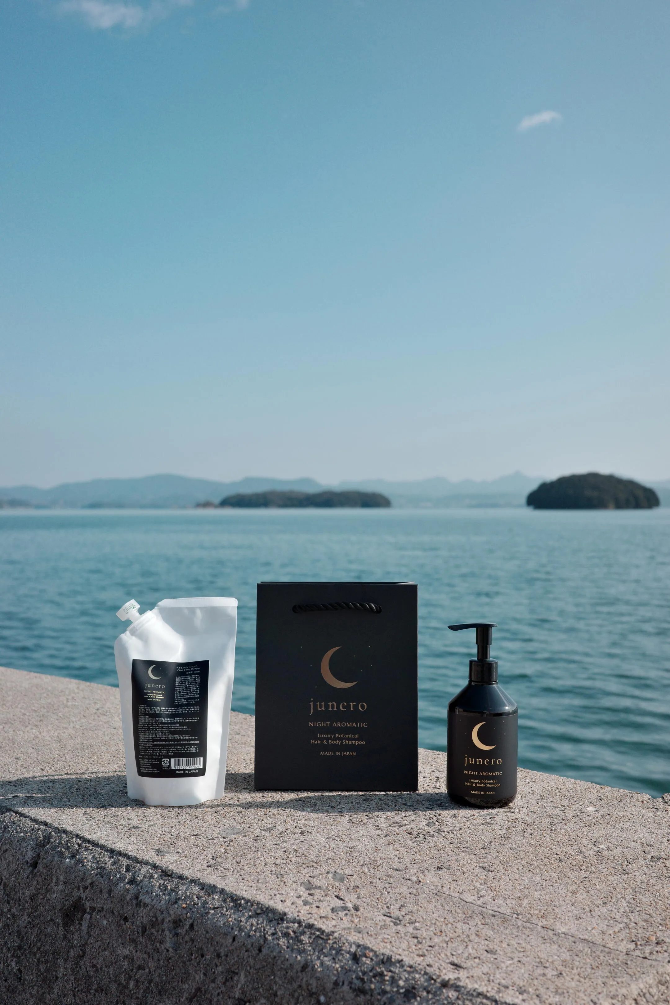 junero ナイトアロマシャンプーは、“香りをつくる農業”から生まれた全身対応型アロマシャンプーです。自社果樹園で土づくりから植物を育て、抽出・蒸留・製品化まで一貫して行うことで、原料背景まで語れるストーリー性と高付加価値を実現しています。