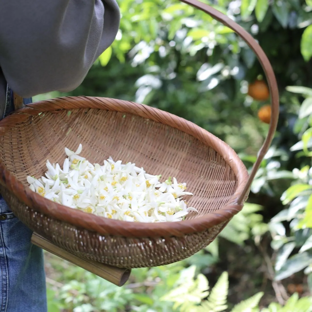 私たちは、長崎や京都の豊かな自然の中で、農薬や化学的な処理に頼らず、土づくりから丁寧に植物を育ててきました。耕作放棄地の再生にも取り組み、自然と共に循環する農業を実践しています。特に、たった二週間しか咲かない橙の花を一輪ずつ手摘みし、咲きたての息づかいを閉じ込めたネロリ精油は、1kgの花からわずか1gしか採れない希少なもの。その繊細で凛とした香りは、心に静かな余白をもたらし、深い癒しを与えます。