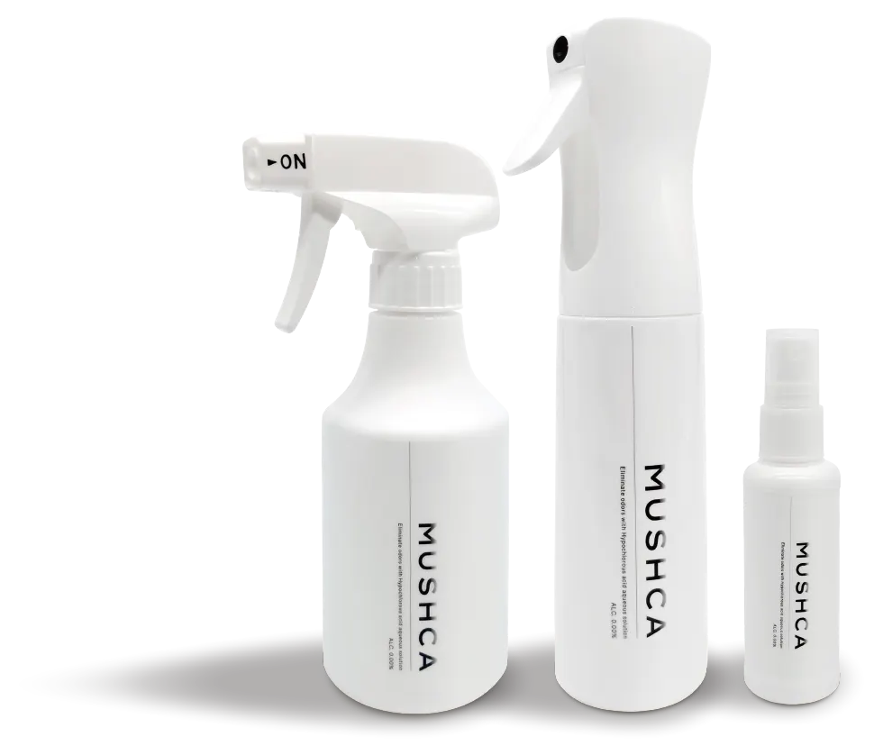 業務用清掃用品メーカーとして、プロの清掃現場で使用される製品を製造してきた弊社は、実はこんなに消臭効果が高くていいものがあるのに、あまり世に知られていないことに気づいていました。この良さをもっともっと広く知っていただき、世の中のお役に立ちたい。そんな想いでMUSHCAは誕生しました。