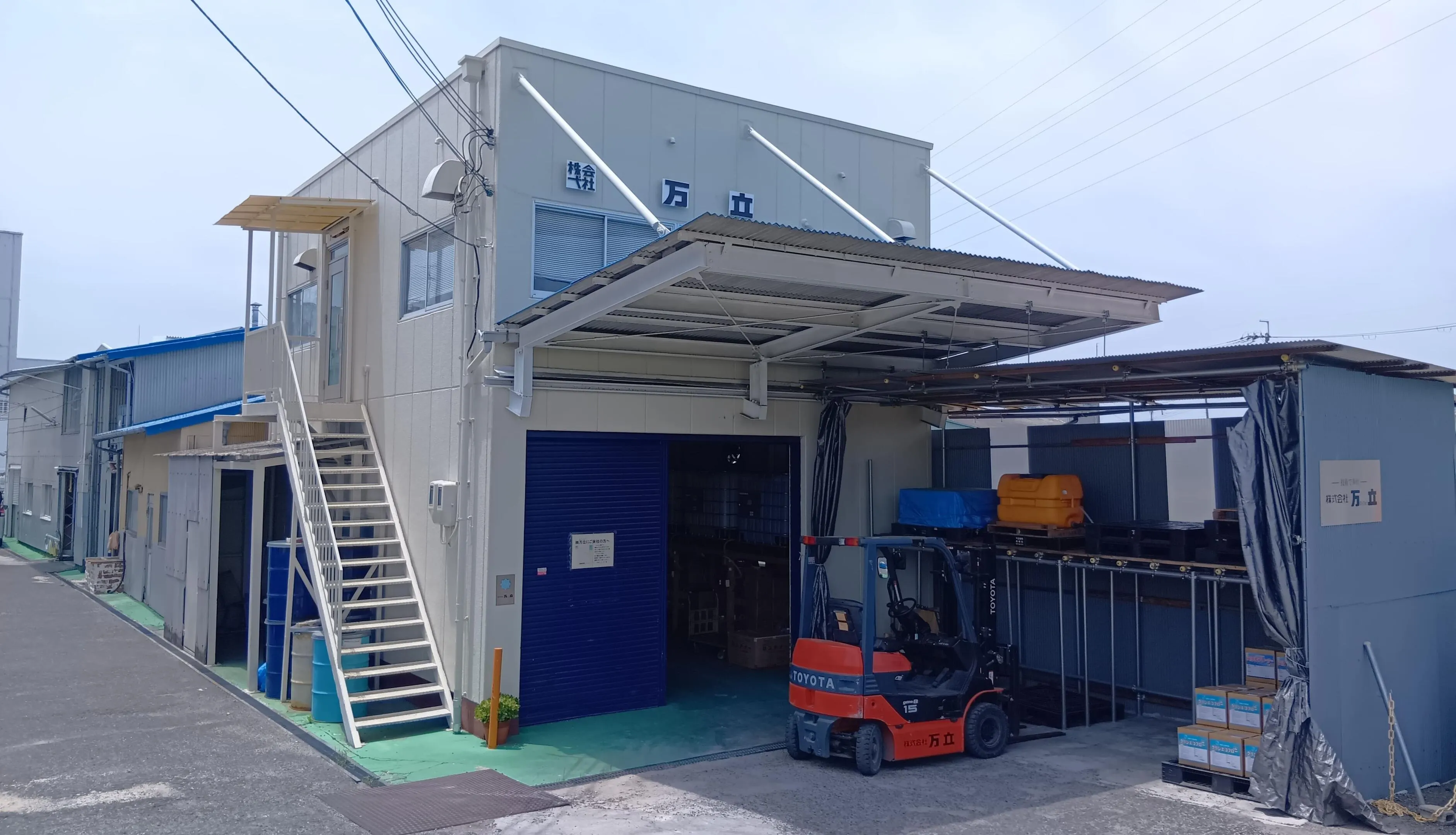 株式会社万立は、大阪府柏原市で1963年に創業した、小さな清掃用化学品メーカーです。 創業時より62年間、地道に商品の開発・製造に取り組んでまいりました。 これまで、清掃業者様のご要望に真摯に向き合い、業務用の床用のワックスや洗剤等多くの製品を開発いたしました。 除菌で有名な次亜塩素酸水溶液の独自製法をも開発。この次亜塩素酸水溶液が消臭にも効果を発揮することに目を向け、もっと身近なところでもこの効果を知っていただきたいとの想いからMUSHCA(ムシュカ)を開発いたしました。