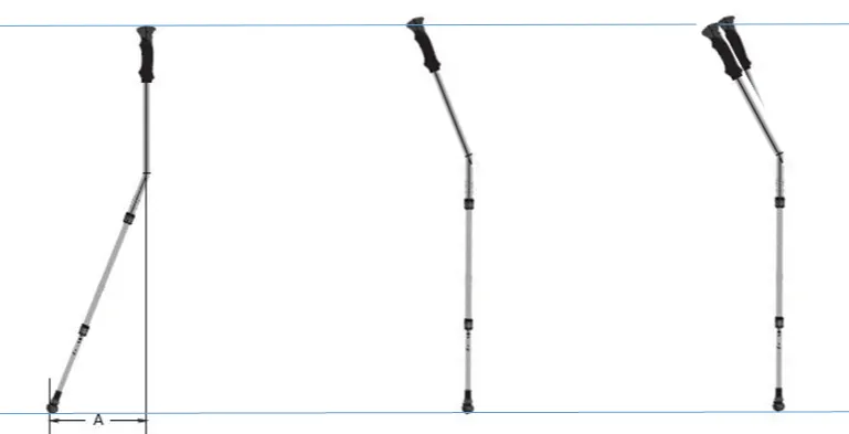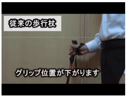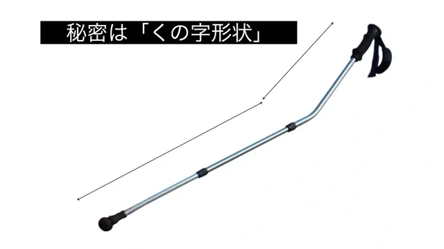・グリップから25cm下の位置で、長さが100cmの時に、杖の先端が約25cm前方になるように曲げられています。
