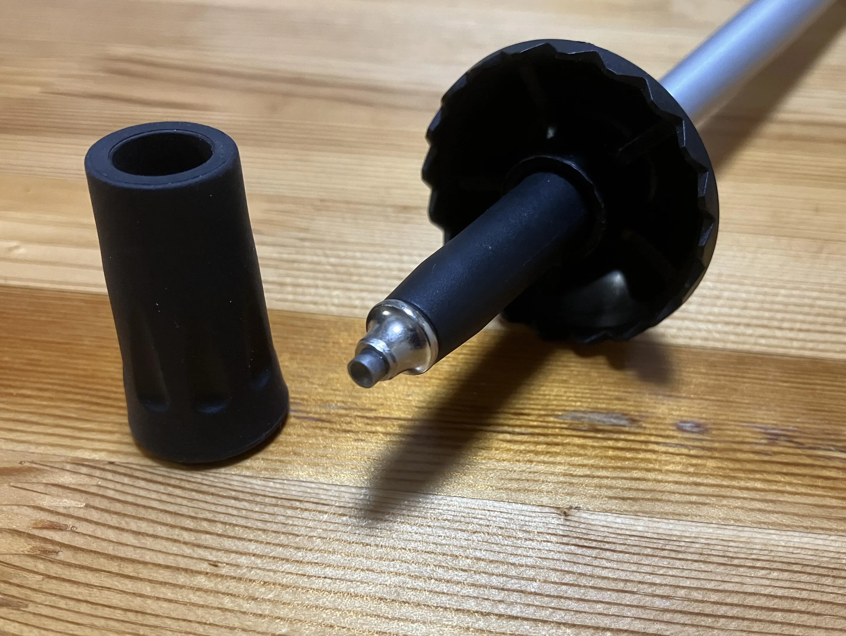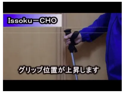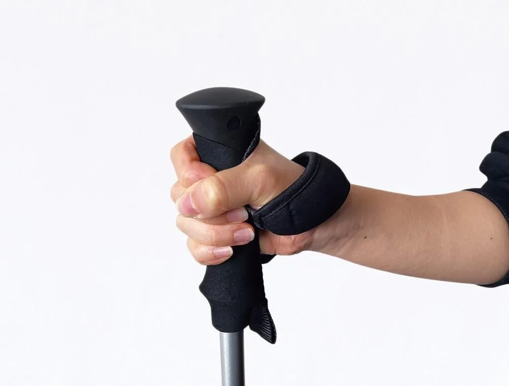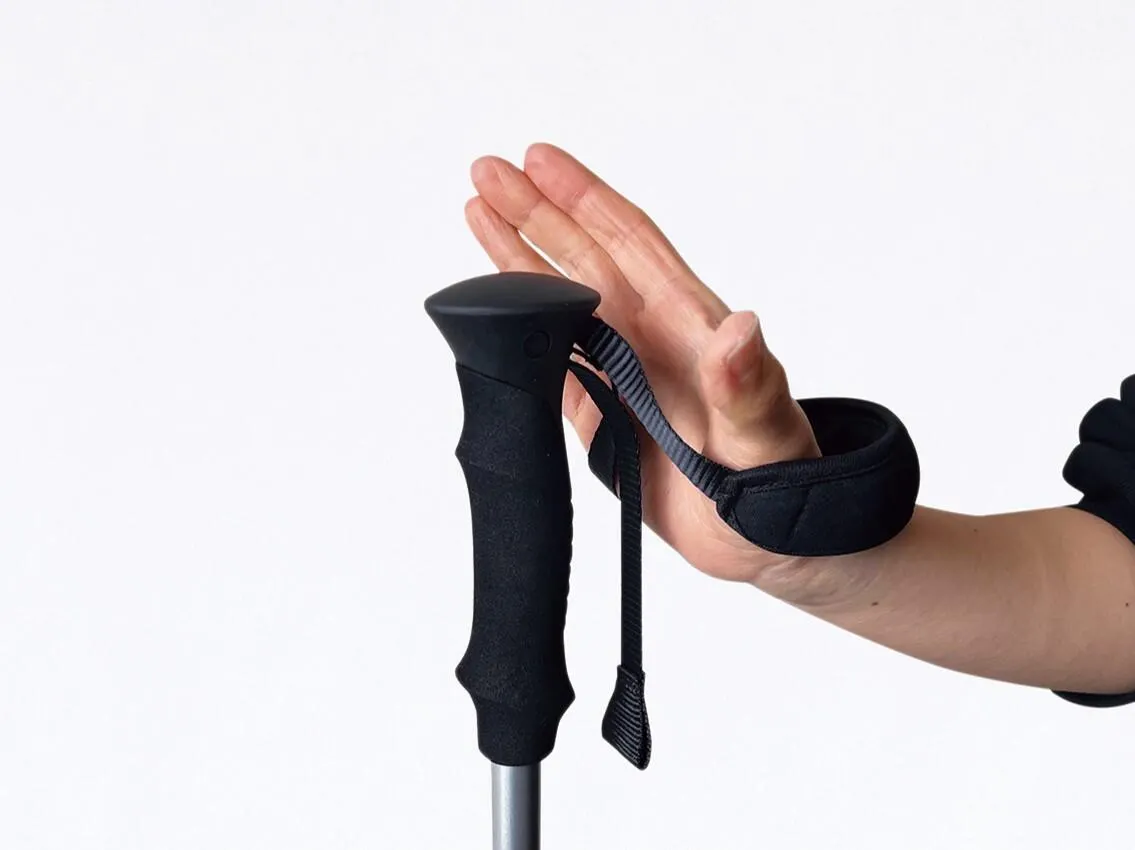 『ウォーキングIssoku-CHO』のグリップにはトレッキングの製品で主に採用されているストラップを採用しました。そのことにより、荷重を掛けやすくなるとともに、日常における使い勝手を良くしました。1本づかいも可能です。