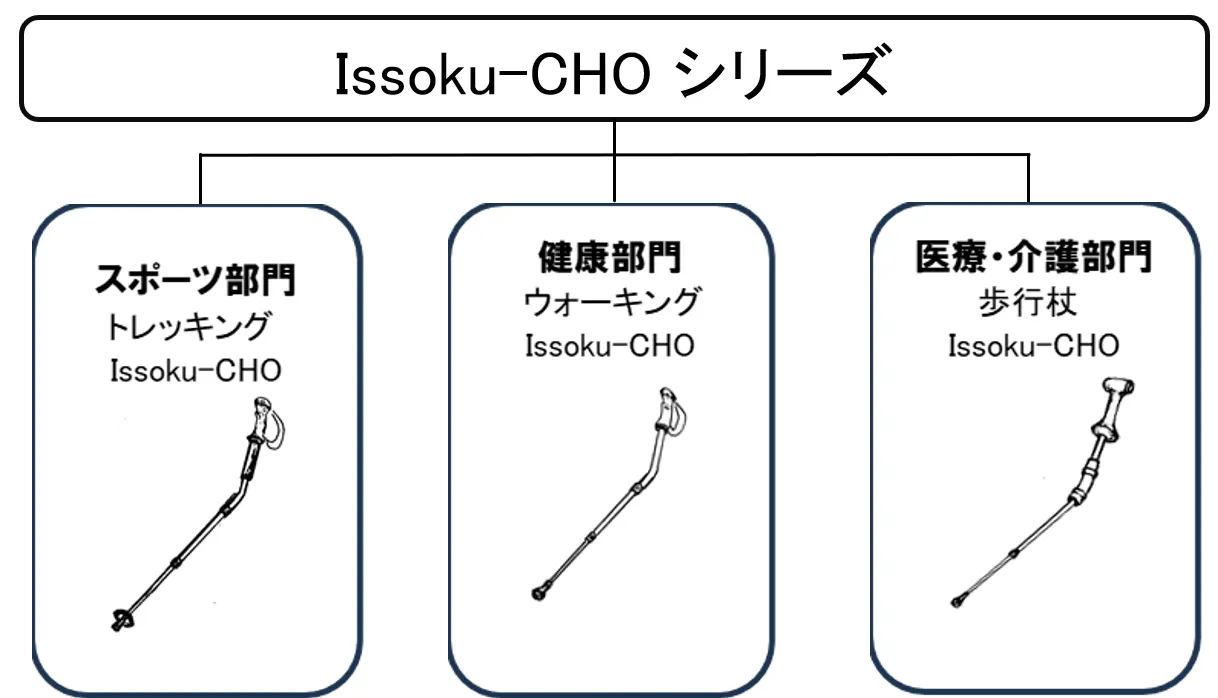 『ウォーキングIssoku-CHO』のパイプ径をワンサイズアップし、アルミとカーボンのハイブリッドにした『トレッキングIssoku-CHO』の販売を予定しています。