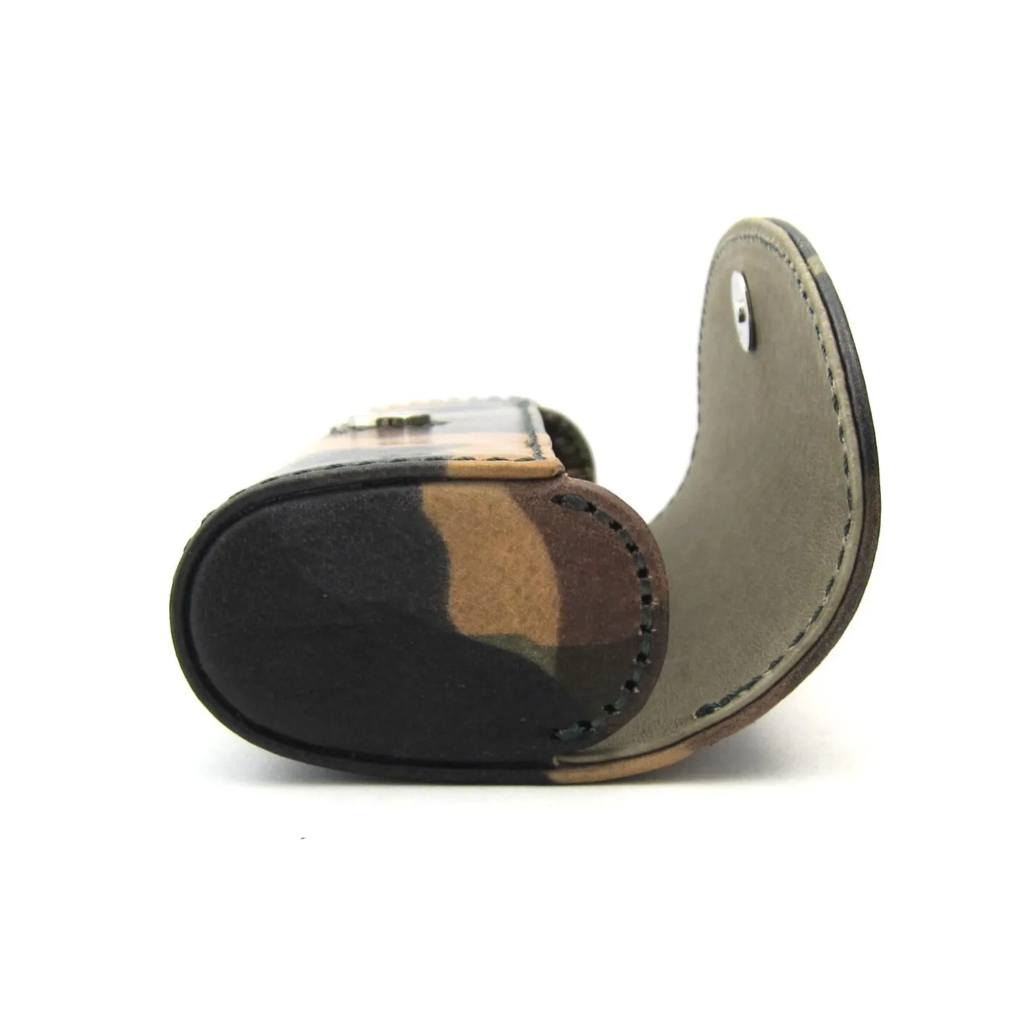 私たち duct の看板商品であるハードタイプのメガネケースは、カードボード製の硬い芯材を組み立てた「箱枠」を革で包んだ丈夫な設計。まるで革で作った箱のようなフォルムで、大切なメガネをしっかりと保護します。内側背面部分には厚さ約2ミリのクッション材を入れ、レンズやフレームへの負担を軽減。マグネット式の開閉はスムーズで使い勝手も抜群です。イタリア製バケッタレザーの風合いと、リーズナブルな価格も相まって、長年にわたりduct 一番の人気アイテムとなっています。