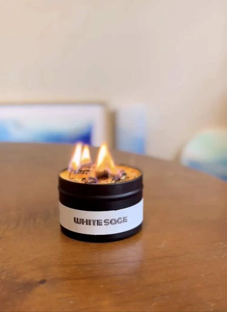 『ホワイトセージ』は古くからネイティブアメリカンが神聖な儀式の時に、空気を浄化し、邪気を払ったりする浄化アイテムとして使用されてきました。ホワイトセージは直接火をつけて使うのが一般的ですが、Irie candleではソイワックスにホワイトセージを染み込ませ素材の力を存分に引き出しキャンドルに仕上げています。