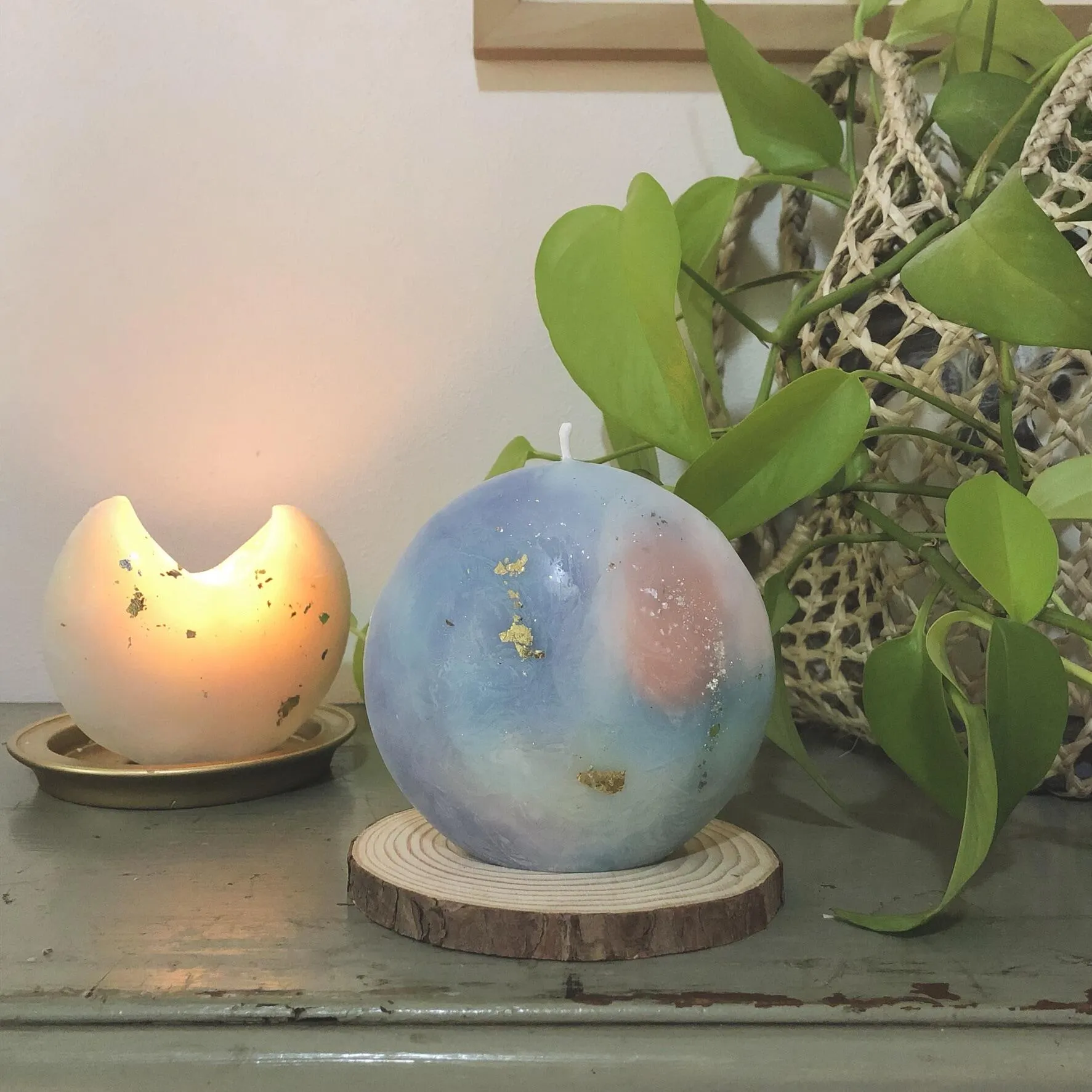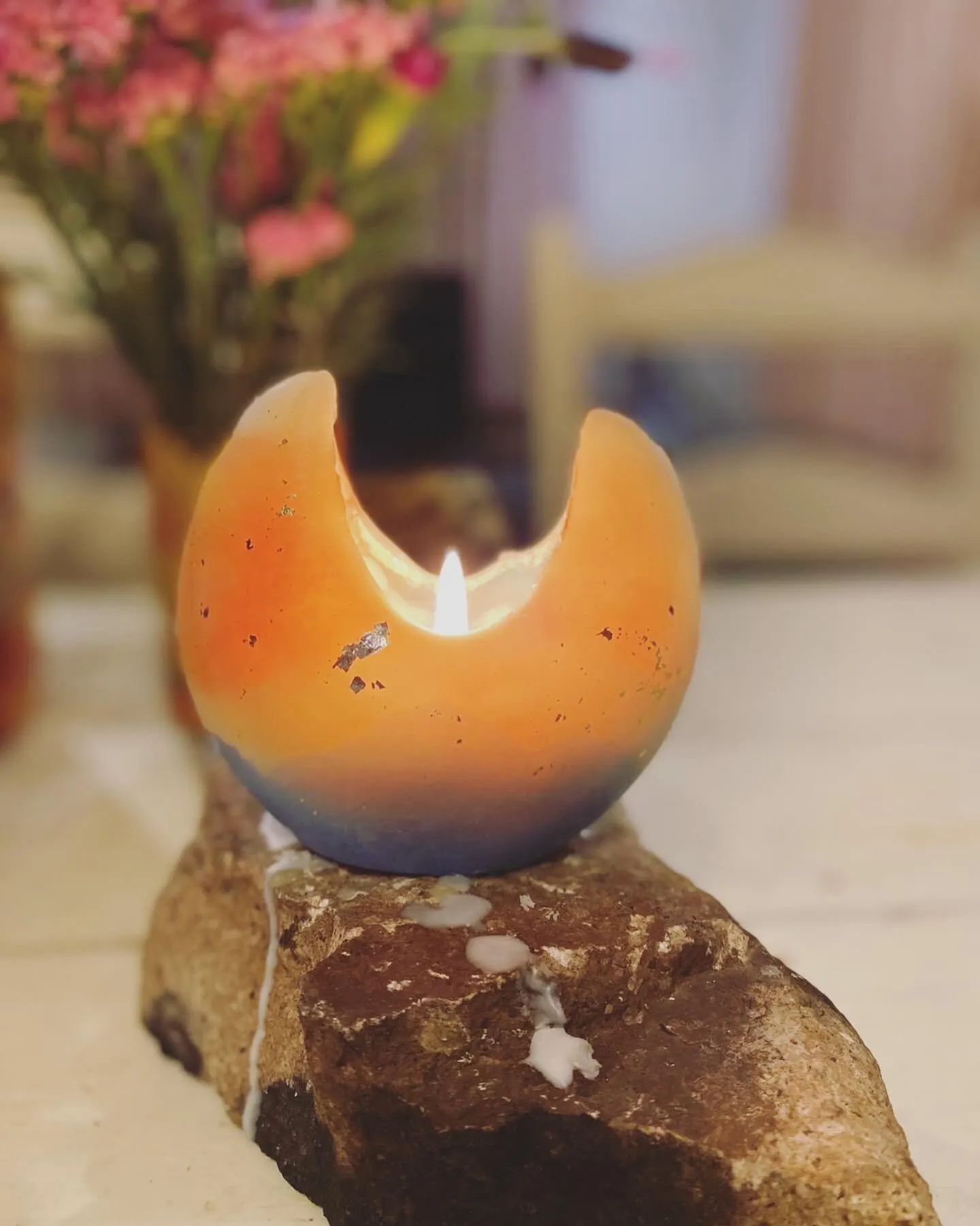 月の満ち欠けのように、灯す事で形を作り上げていくキャンドルです。