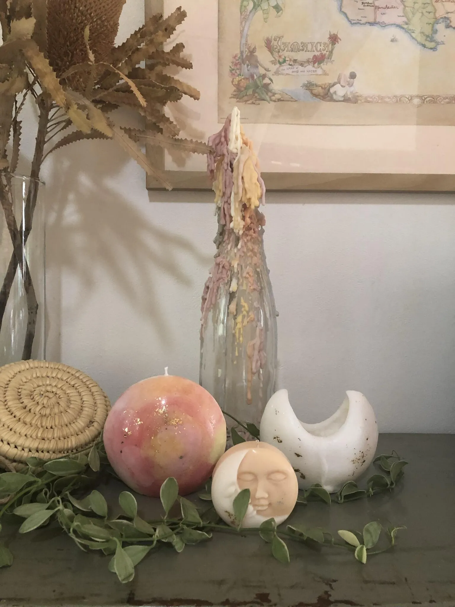 癒しのお月様のキャンドルです。インテリアとしてはもちろん、可愛い見た目とは裏腹にシュールにとろけていく姿が儚く愛おしいお月様です。