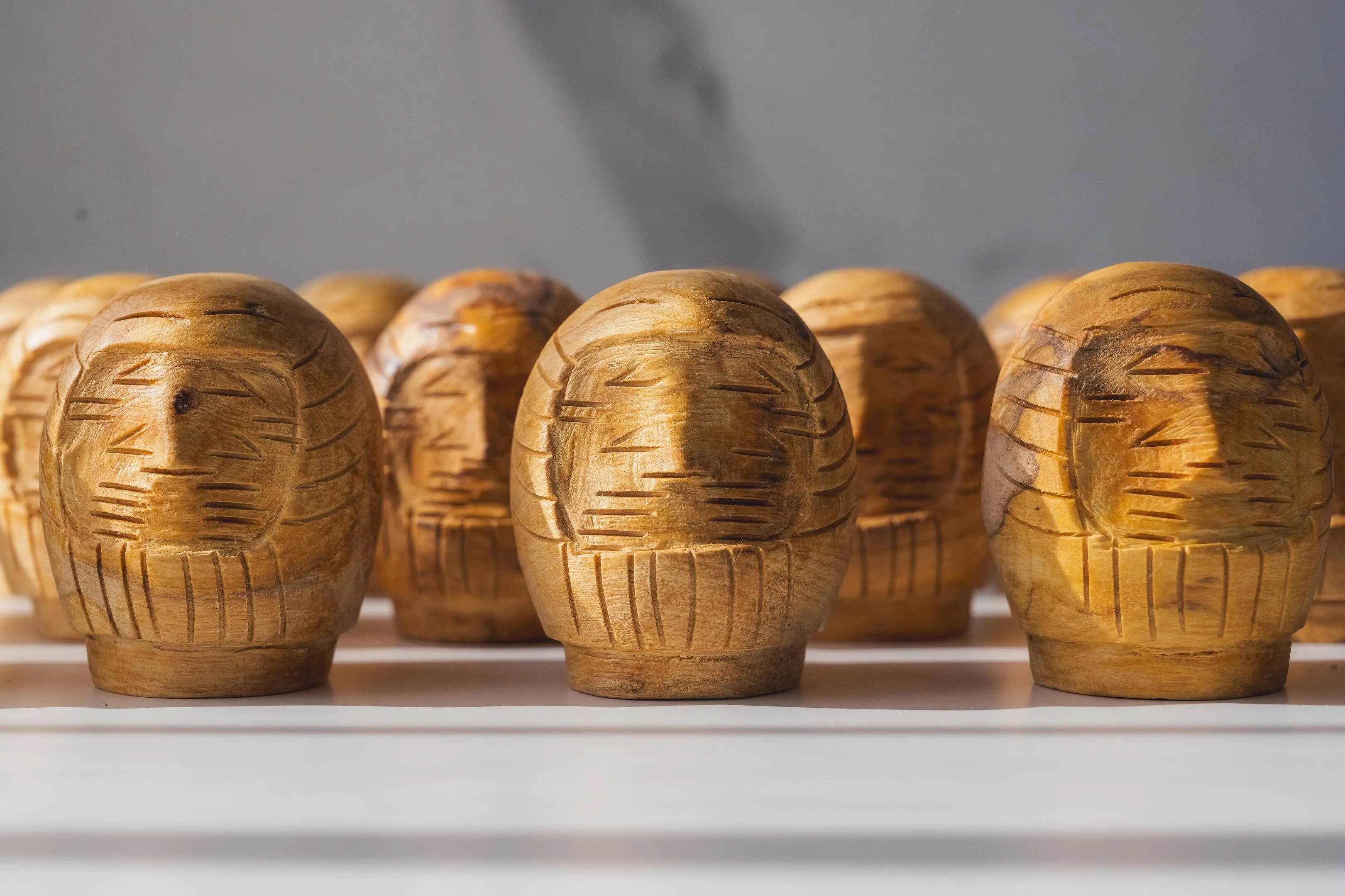 ▲最近ではペルー現地の職人とコラボレーションしてパロサント製のダルマなんかもあります