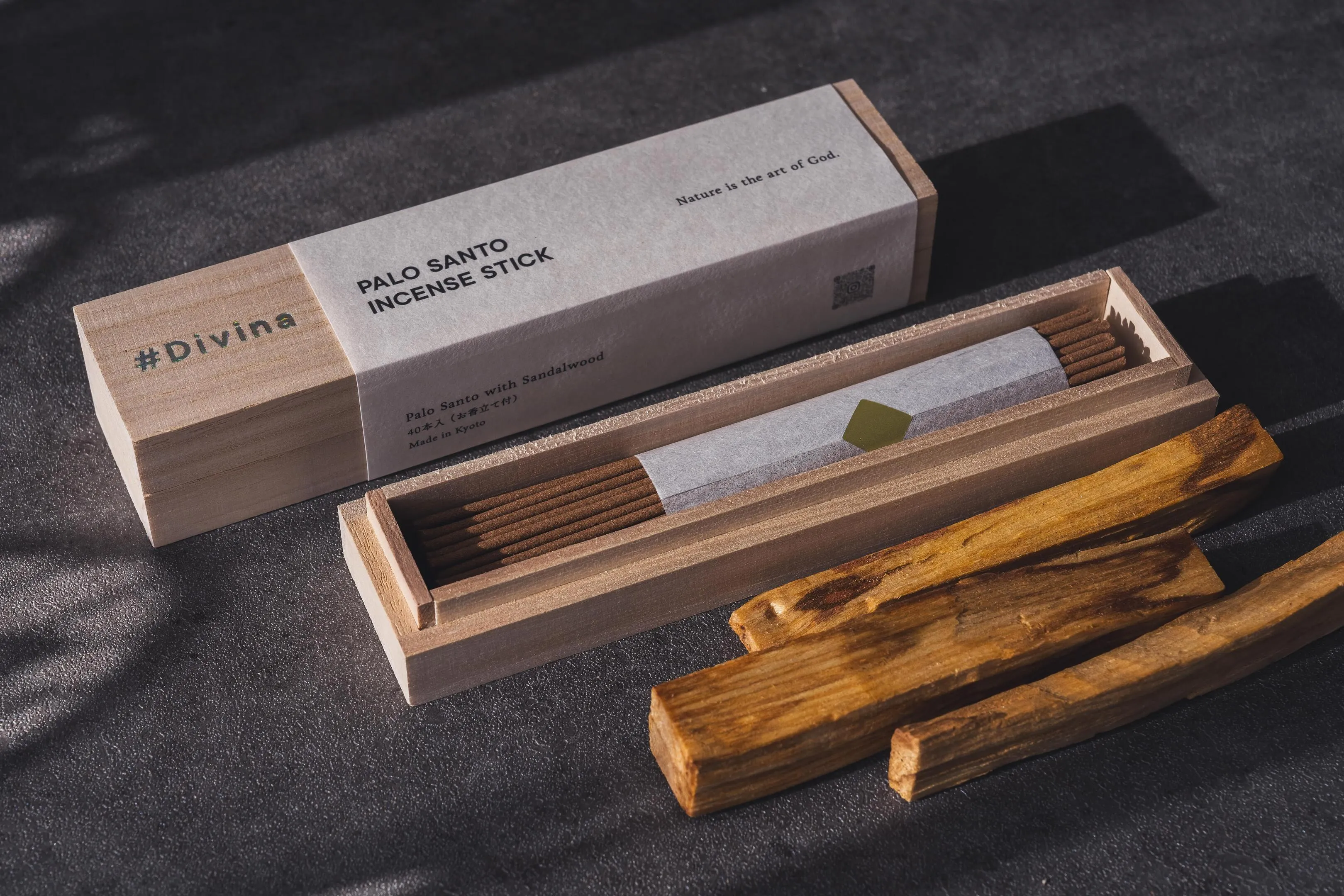 #Divina(ディヴィーナ)はスペイン語で「神聖な」「神の」「完璧な」等の意味。「聖なる木」と言われるパロサントを原料に使用したアロマブランドです。