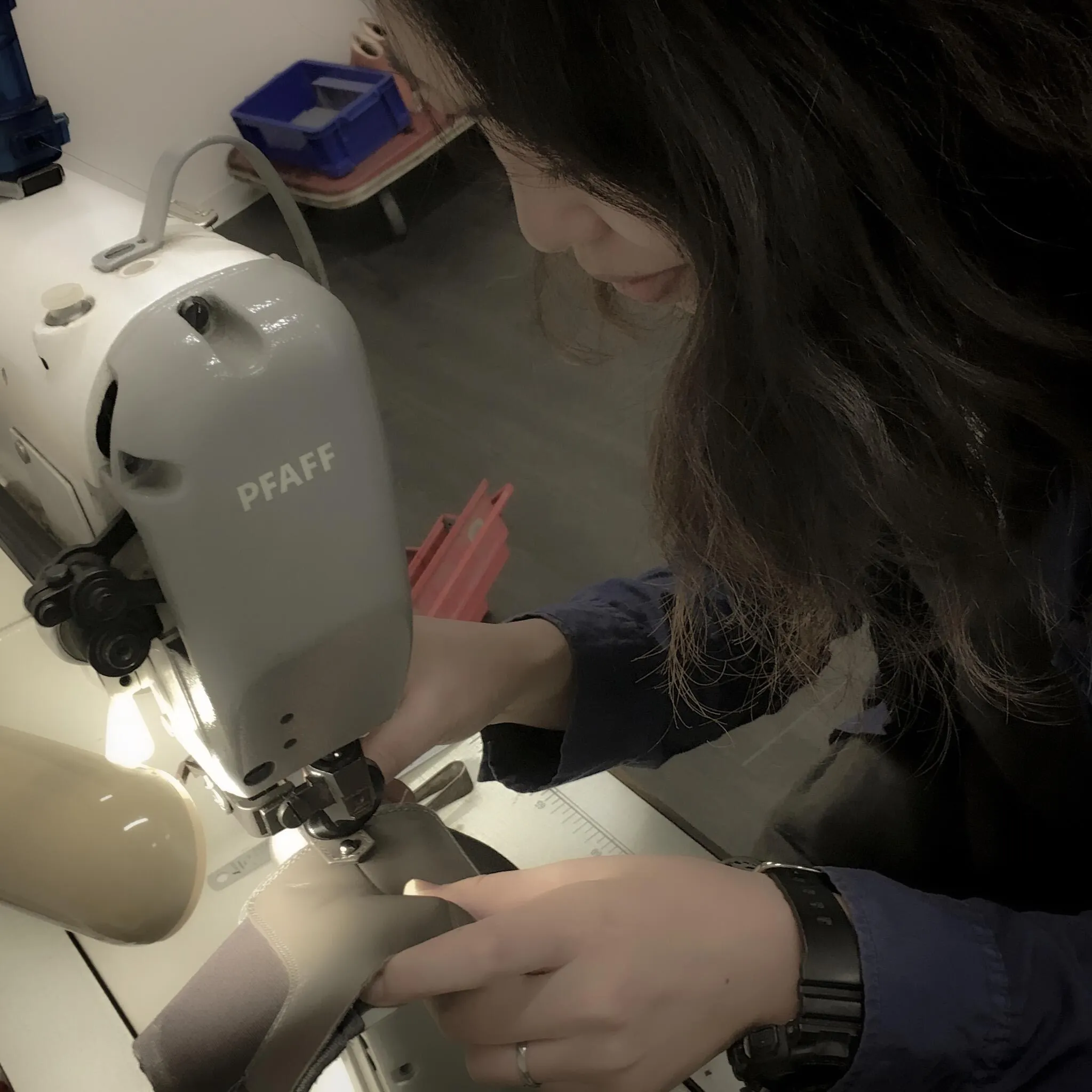 私たちは、神戸でオーダーバブーシュ専門に製作している女性職人さんに作っていただいています。余計な接着剤など入れずシンプルに製作していますし、革も国内で生産している革を使っているので、安心してご着用いただけます。