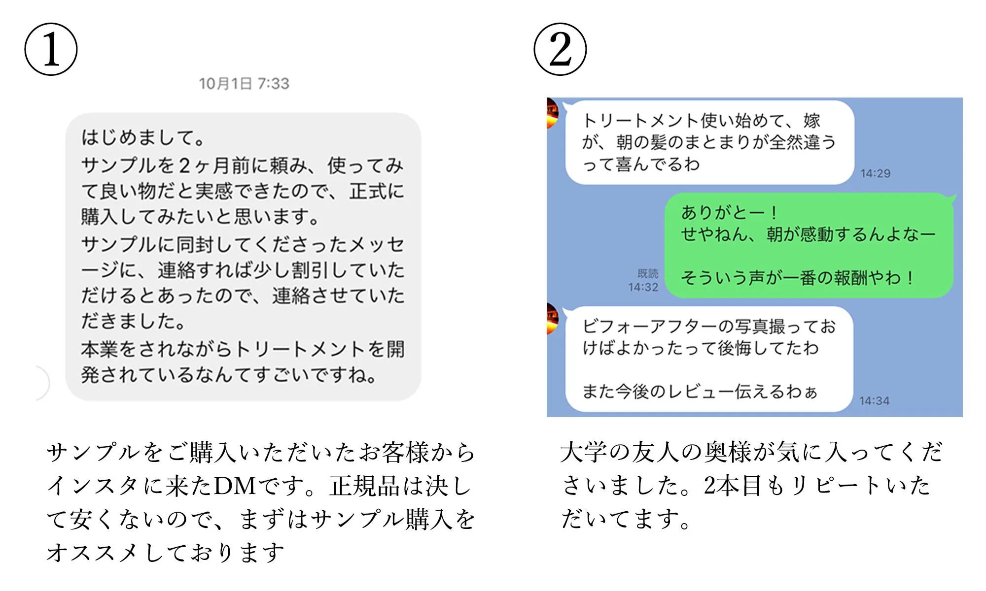 ダイビングを200回以上されてるお客様にも大変ご満足いただいております。月1で銀座の美容室でトリートメントしていたお客様が今では半年に1回しか美容室に行かなくなりました。美容室以上の感動をホームケアで実現できます。