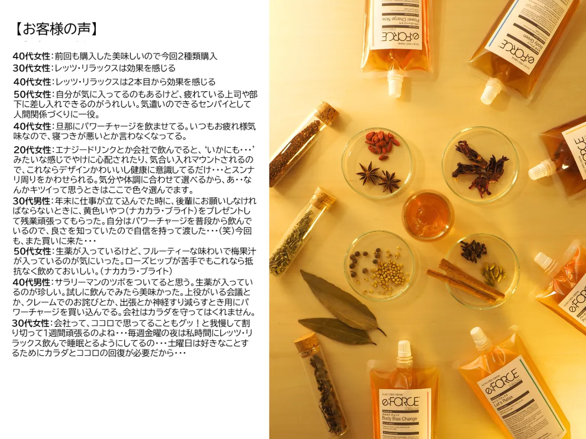 【主なお客様】 20代~70代の忙しい女性。健康・美容意識が高く、睡眠・疲労感・冷え・ストレスケアに関心のあるナチュラル層。