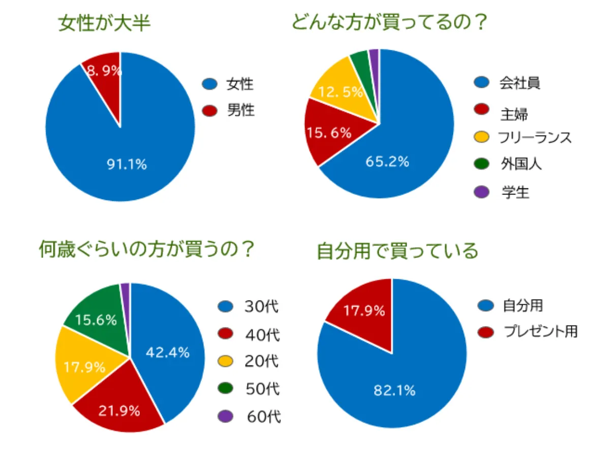【 お客様は30代と40代の女性が大半、自分用で購入。 】