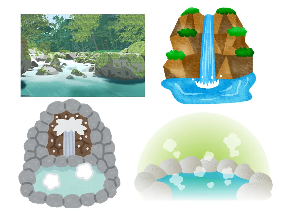 2.滝、川などの水が砕けて、自然のマイナスイオンが発生