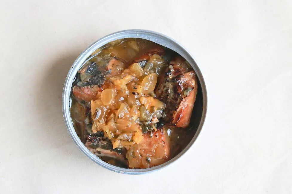 塩麹に漬け込み、旨味を引き出した鰆をひとつひとつ丁寧に炙ってから缶に詰め、あめ色玉ねぎと白ワインのソースで合わせたひと缶は、バゲットや白ワイン、クラフトビールと相性の良いひと缶に仕上がっています。