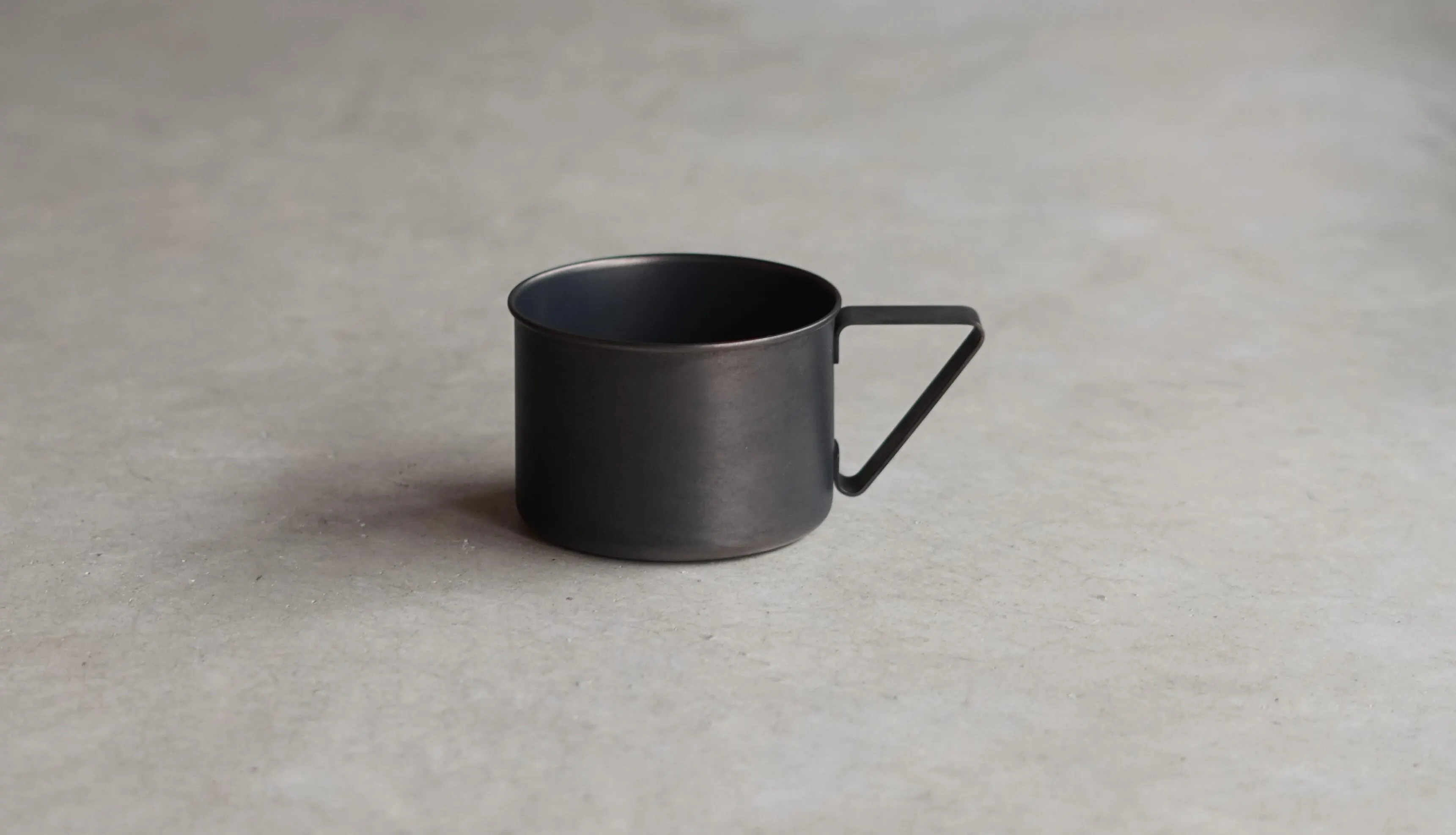 黒染めの雰囲気を全面に味わえる、シンプルで高級感のある取っ手つきのマグカップです。