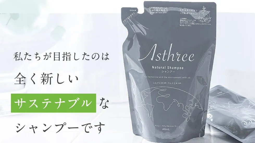 Asthree(アスリー)は、ボトルを作らないという完全ボトルレススタイルのヘアケアブランド。
