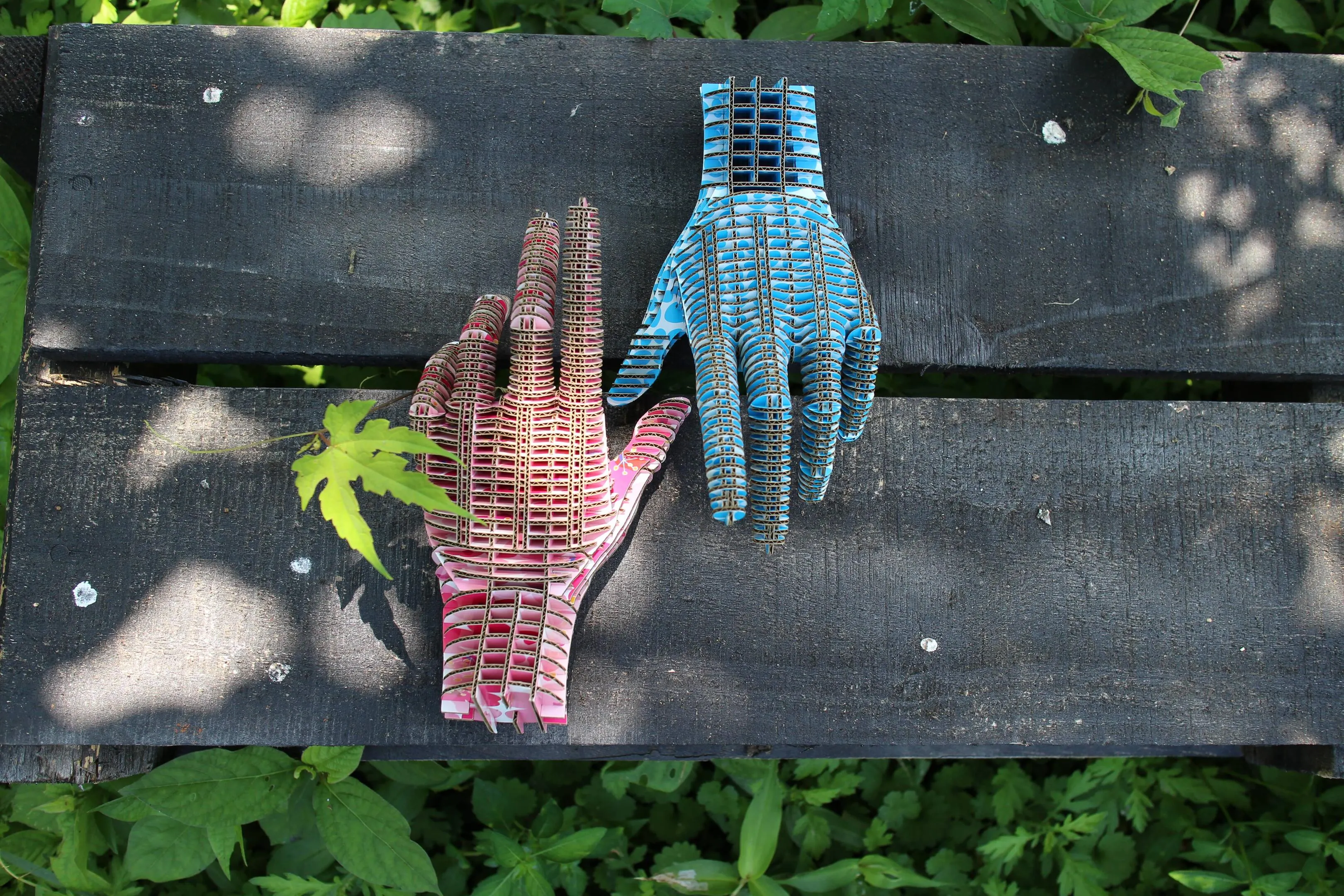 FLATSのもう一つの特徴は多様な素材を使えるということです。紙や木素材、アクリル、金属など、レーザーでカットできる板材はすべて材料として使うことができます。特に紙素材は色紙や印刷した紙を貼り合わせることによってバリエーションが飛躍的に拡大します。