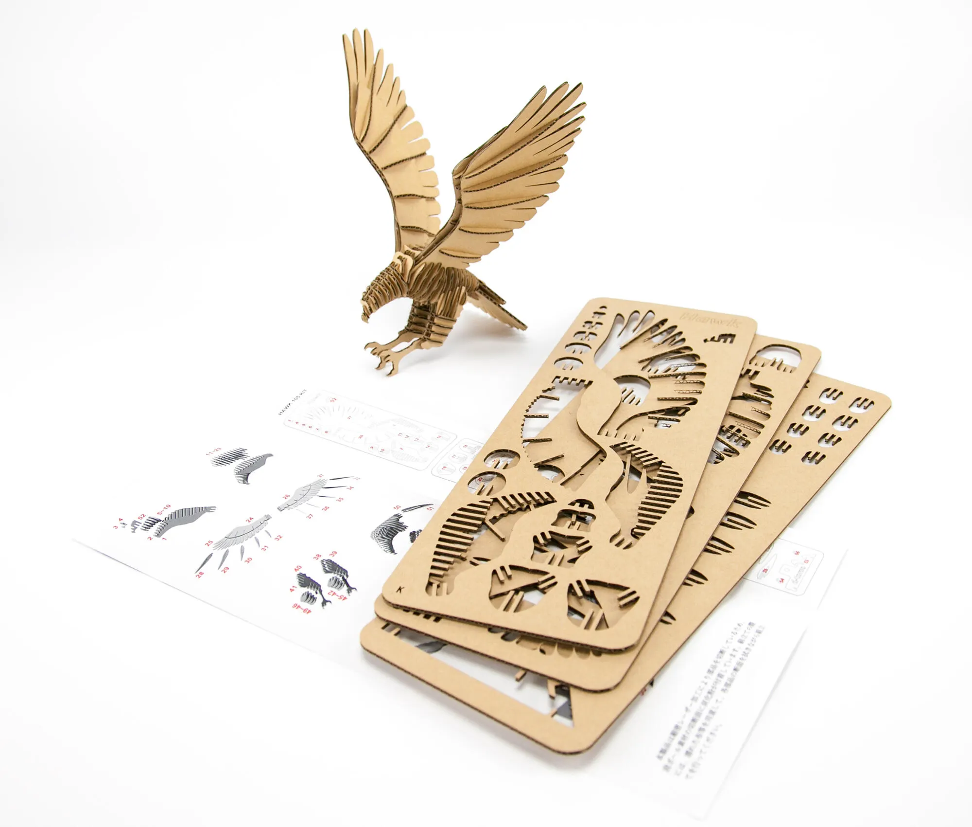 個々のパーツは細密レーザー加工によって切り出され、ハサミや接着剤を使用すること無く、簡単に組み立てることが出来ます。
