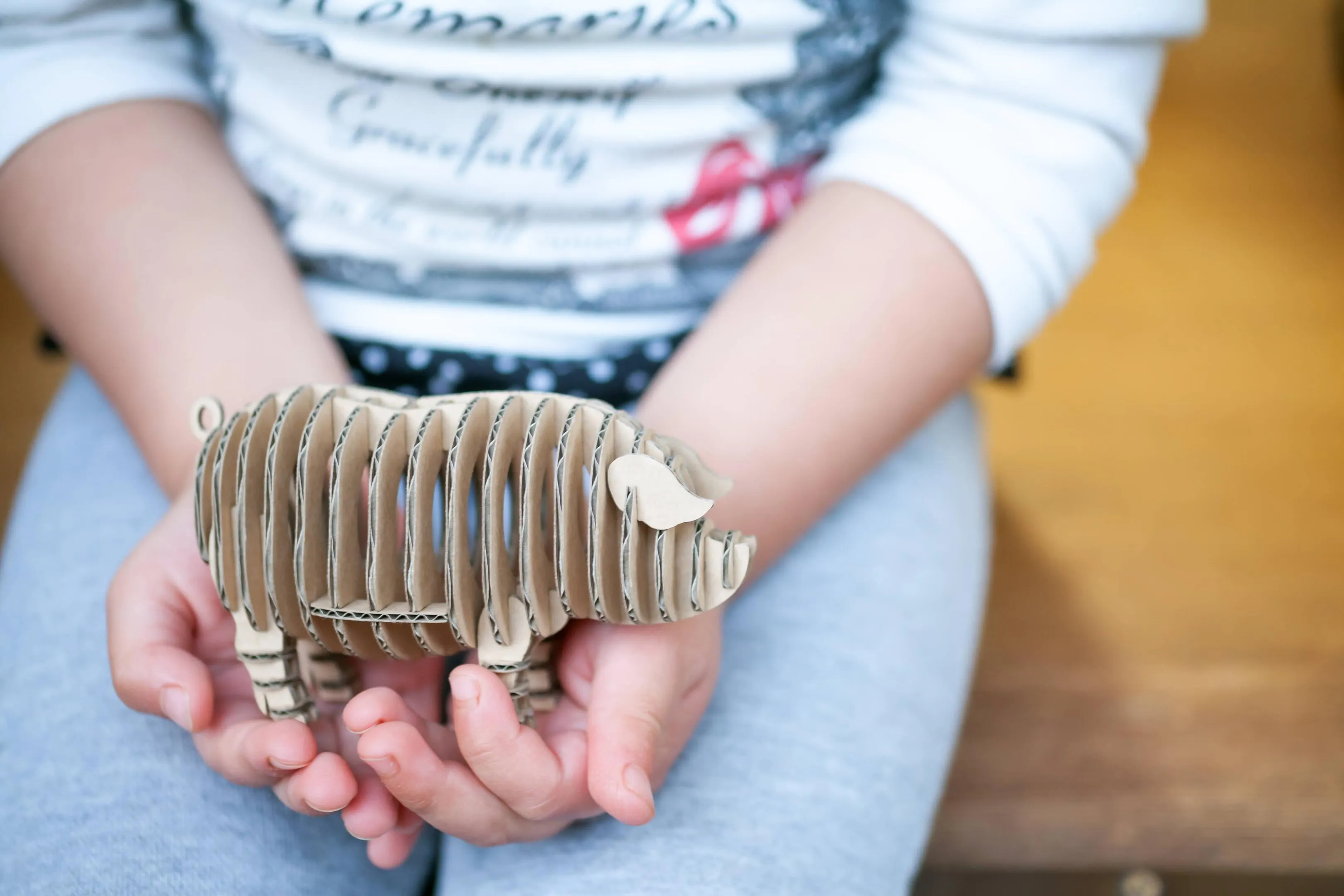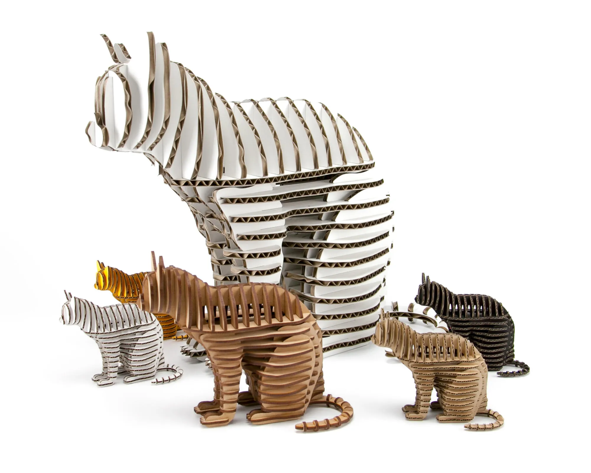 組立キットをプレゼントとして、頭の体操や集中したい時にはご自分で組み立て、完成後はリビングや書斎のインテリアに、と様々な使い方が可能です。素材は段ボールを主な材料としており、エコフレンドリーな商品として国内外の美術館、デザインショップ等にて販売しています。
