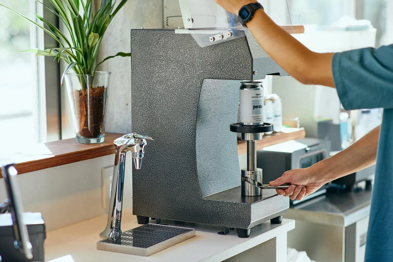 開けた時のプシュという音も、これからもう一息頑張ろう!と気合を入れるときの合図になると考えました。お客様にはその場でオリジナルの缶ジュースができる様子をお楽しみ頂いております。