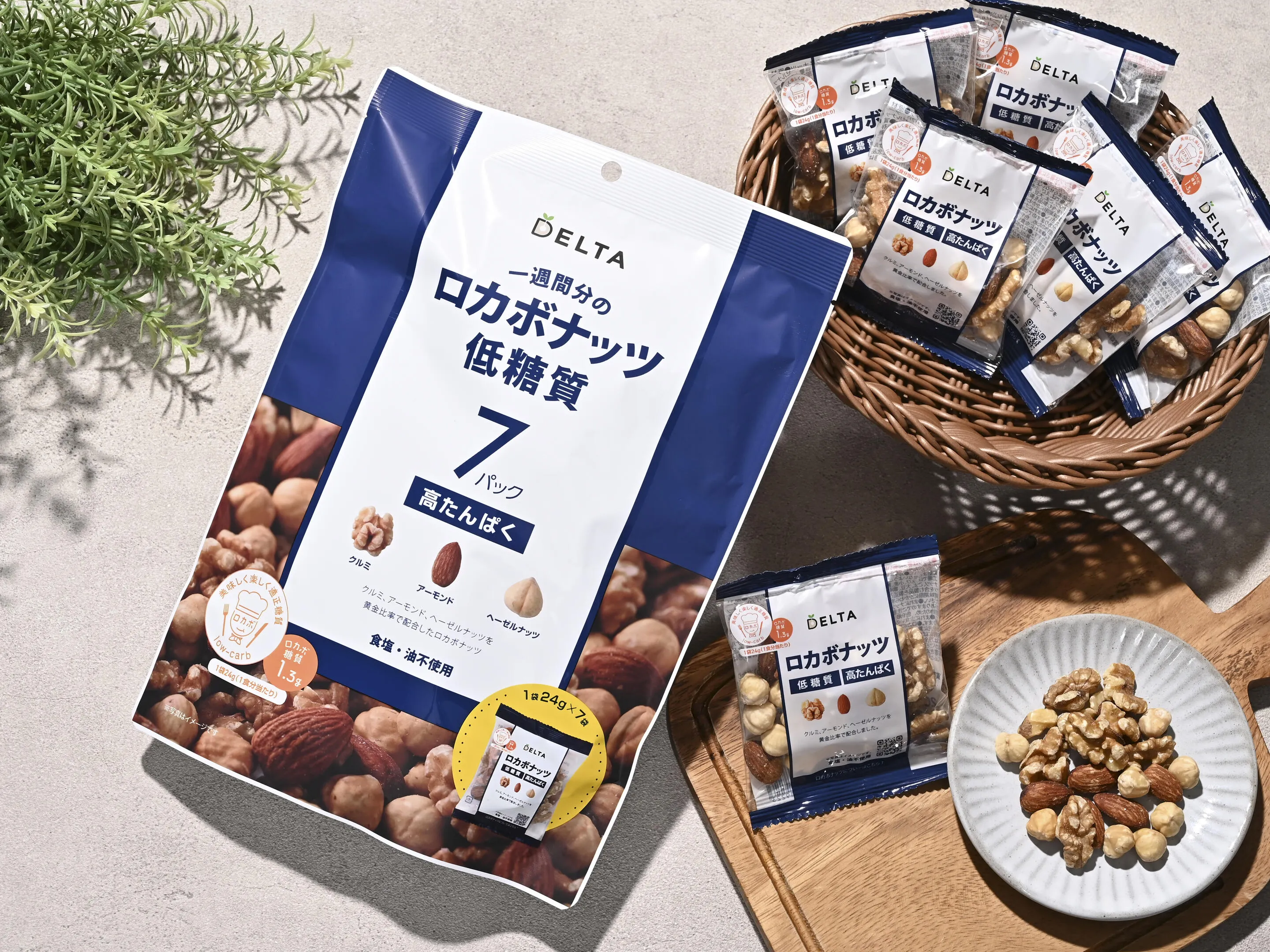 デルタのロカボナッツは、ナッツの中でも糖質が低いナッツをミックスしています。