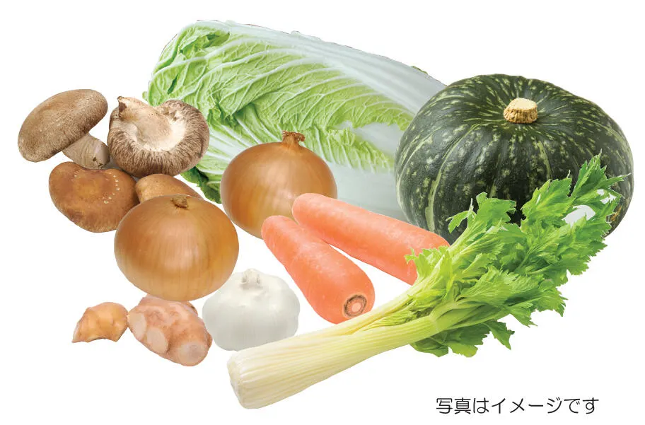 たまねぎ・かぼちゃ・にんじん・椎茸・ニンニク・生姜・はくさい・セロリを全国各地から収穫時期に合わせ調達し乾燥粉末したものを使用。