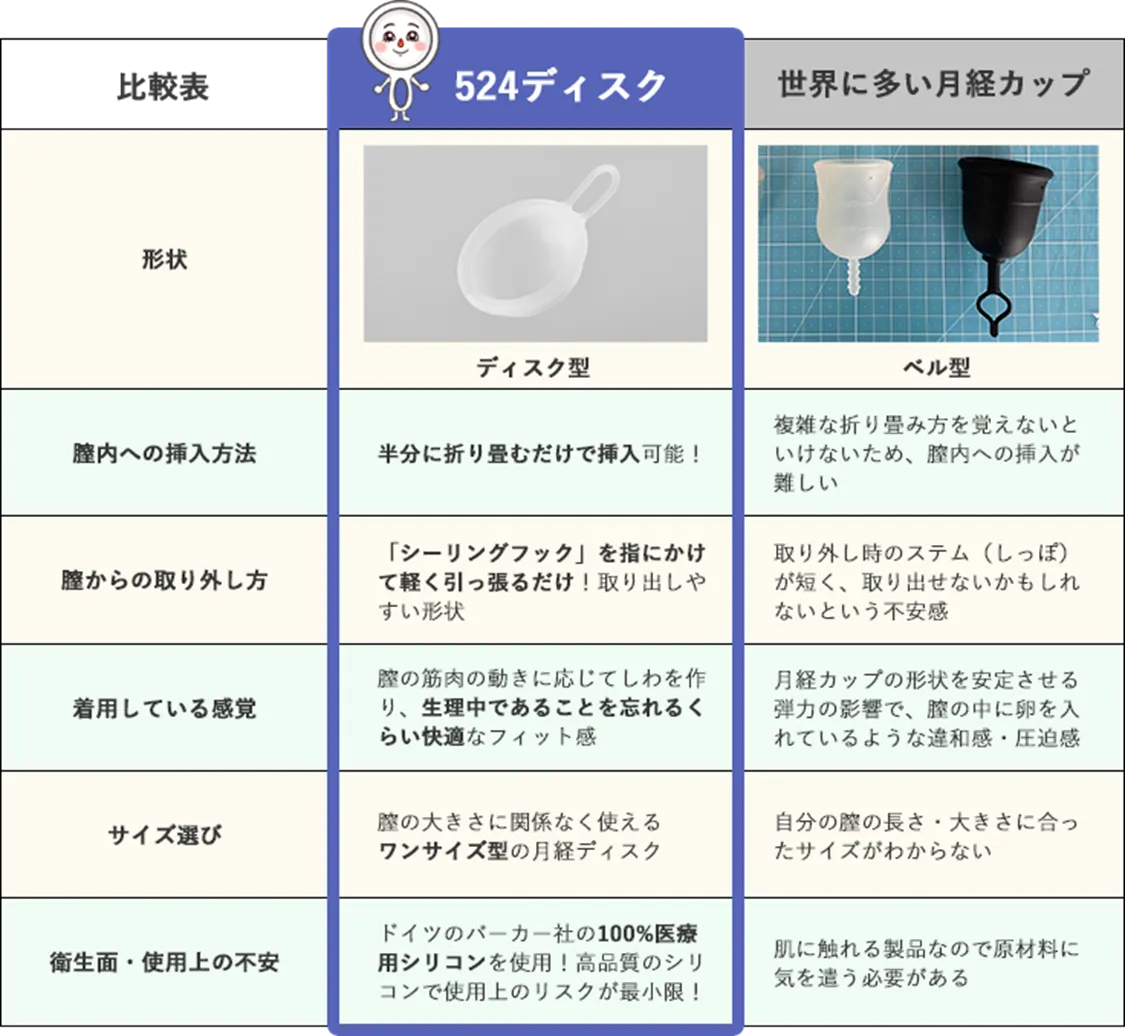 衛生的かつ再利用可能な 524ディスクによって、約2年間分の生理用品代を節約できます。