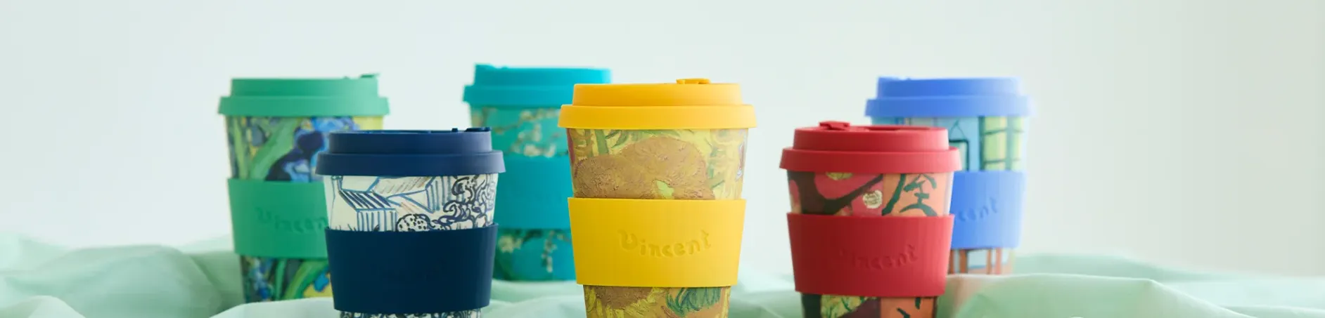 大胆なタッチや美しい色彩で知られるゴッホの世界観を、リユースカップに見事に表現。2025年2月には日本限定デザイン「星月夜」が登場し、幻想的な夜空と縦に伸びる糸杉の美しさを全面にデザイン。その他にも「ひまわり」「アイリスのある花瓶」「ゴッホの寝室」など、名画をカップ全体にプリントし、日常の中でアートを身近に感じられる特別なコレクションです。