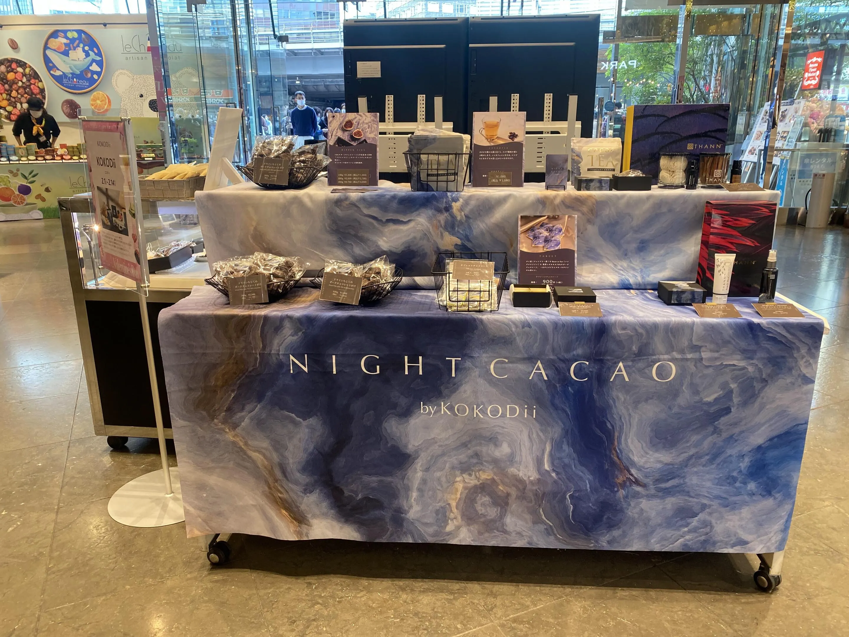 また、カフェでは、当社のノンカフェインのカカオティーをご提供いただくなど健康志向の方に向けた製品もご用意させていただいております。