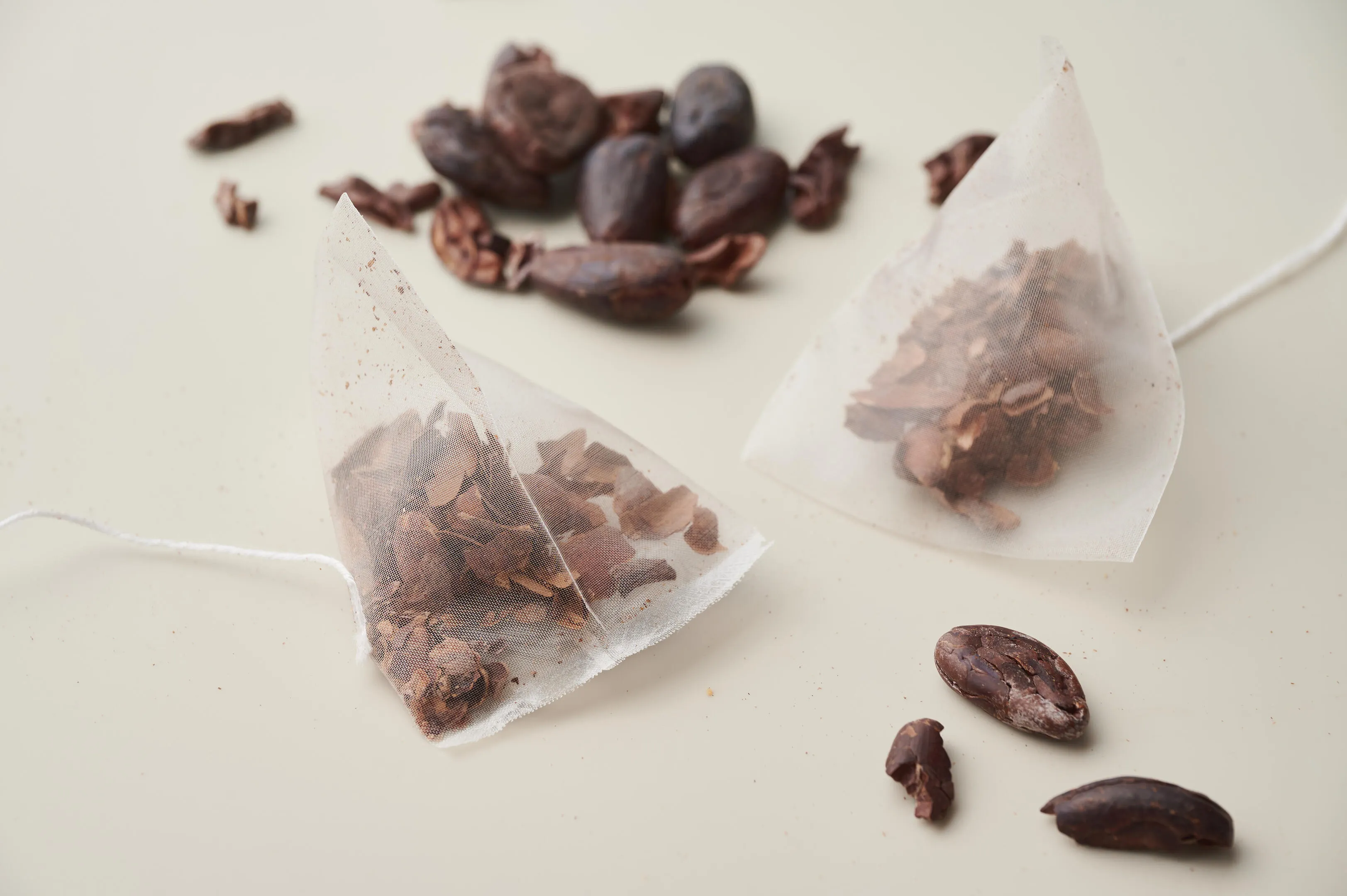 ノンカフェインのチョコレート風味でほんのり甘みのあるお茶。カカオの殻100%でお湯を注ぐだけで美味しくお召し上がりいただけます。