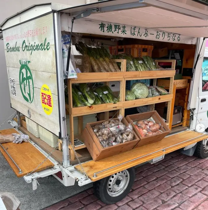 ばんぶーおりぢなるは、「気楽に有機野菜を食卓に」をモットーに、福岡市を中心に有機野菜の移動販売を行っている八百屋です。