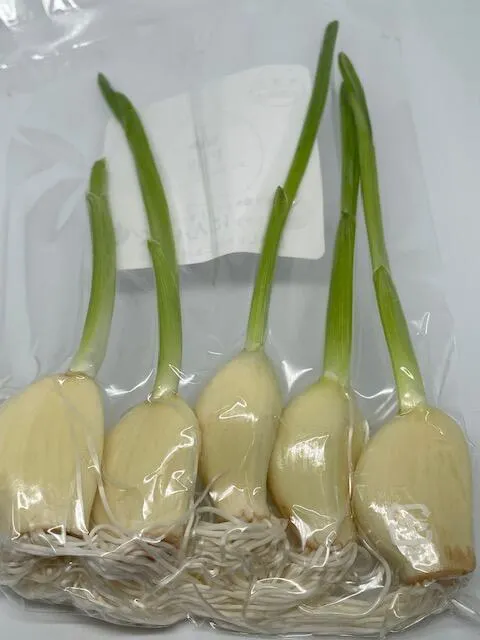 発芽にんにくは、発芽にんにくとは、芽と根が出ているにんにくのことで、ふつうのニンニクよりも栄養素は8倍といわれています。