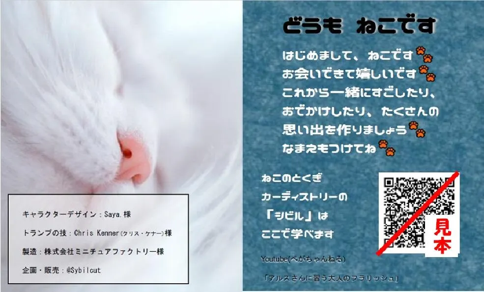 ねこと感情的につながれるメッセージカードが付属しており、その中に日本で最高クラスのカードマジックの腕を持ちカーディストリーの先駆者でもある
