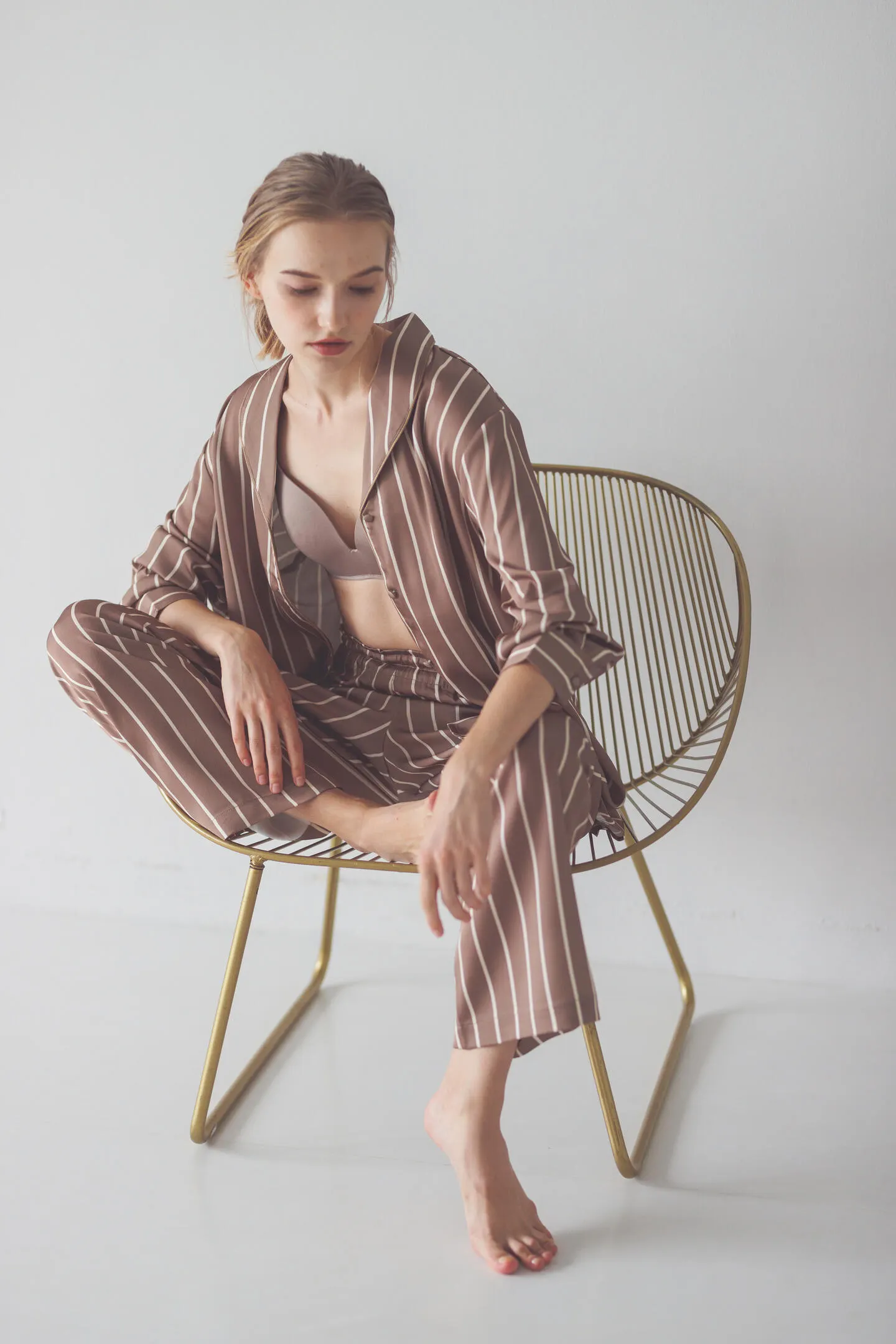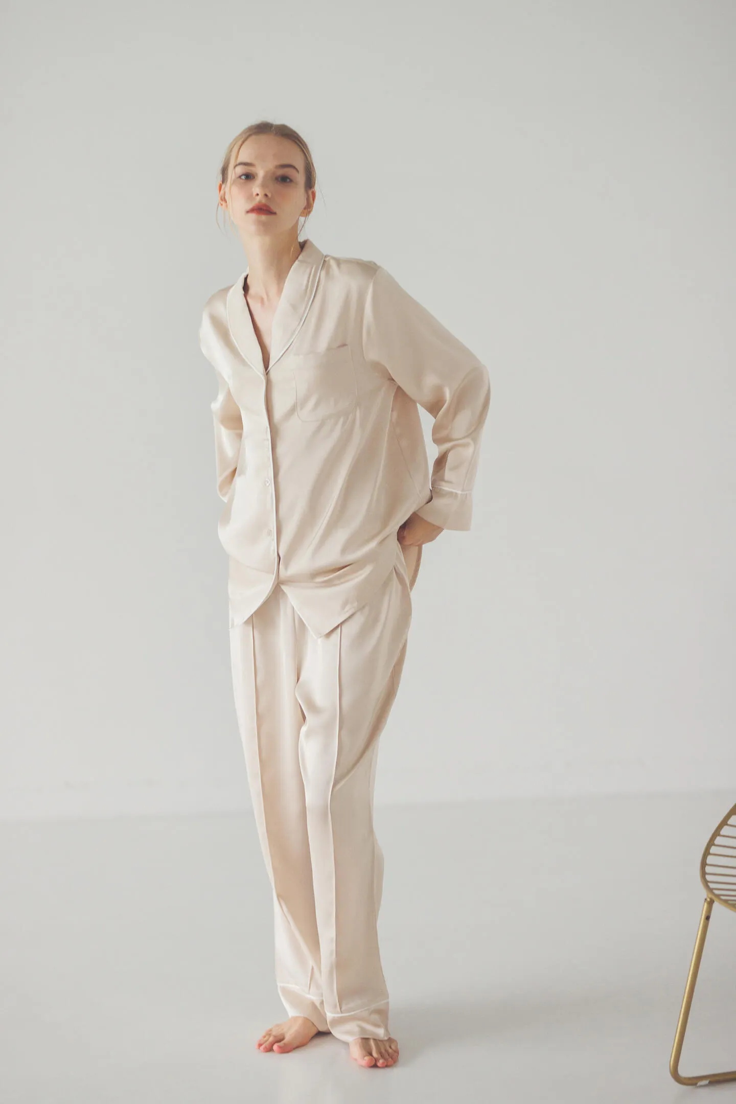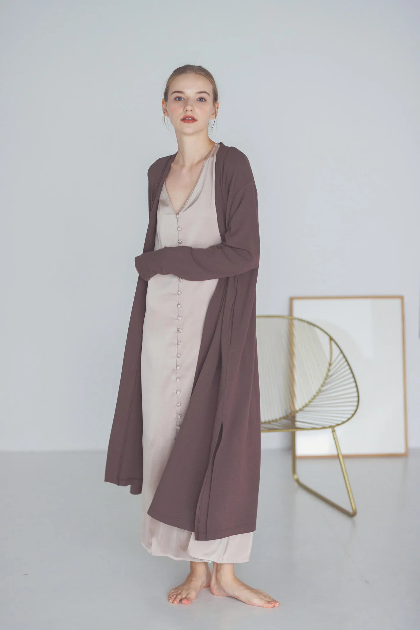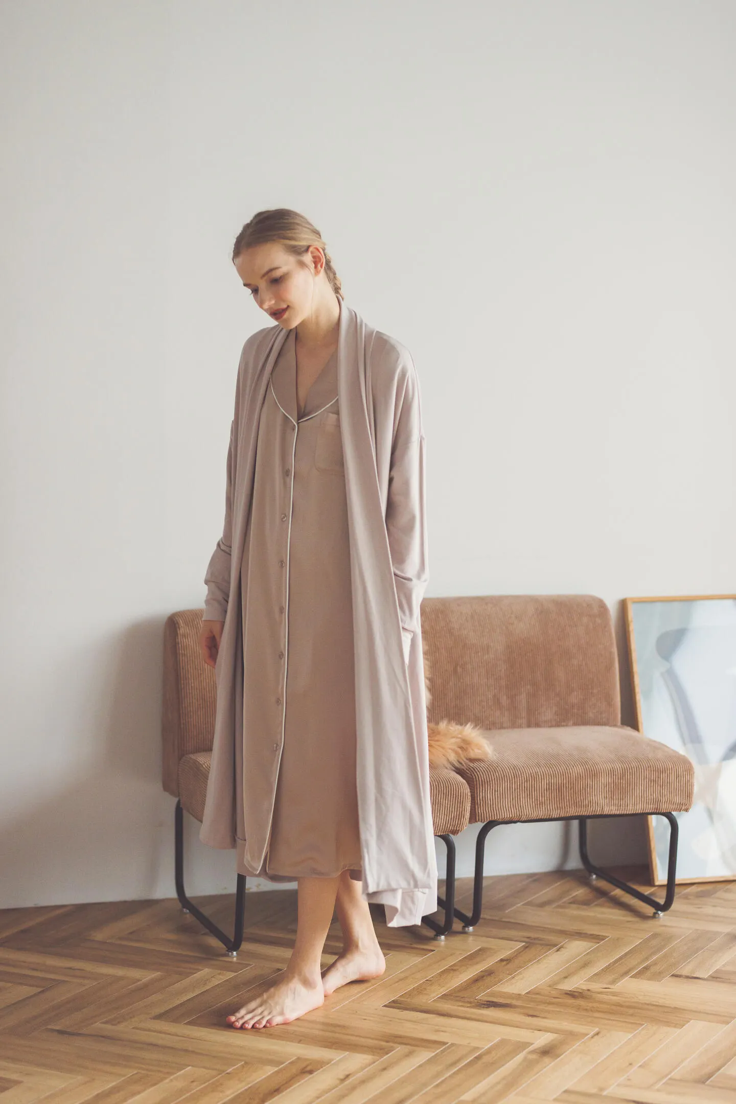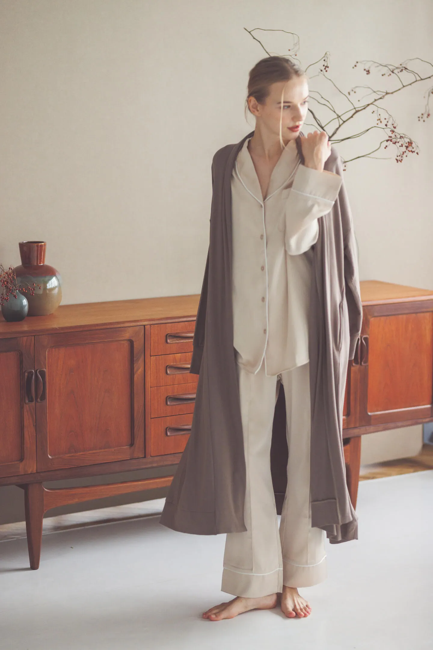 シンプルでありながらも、品のあるディテールを大切にしています。過度な装飾は避け、襟や袖口、ステッチなどにさりげない美しさを追求。自宅でも「美しくいること」を大切にしたい大人の女性にふさわしいデザインです。