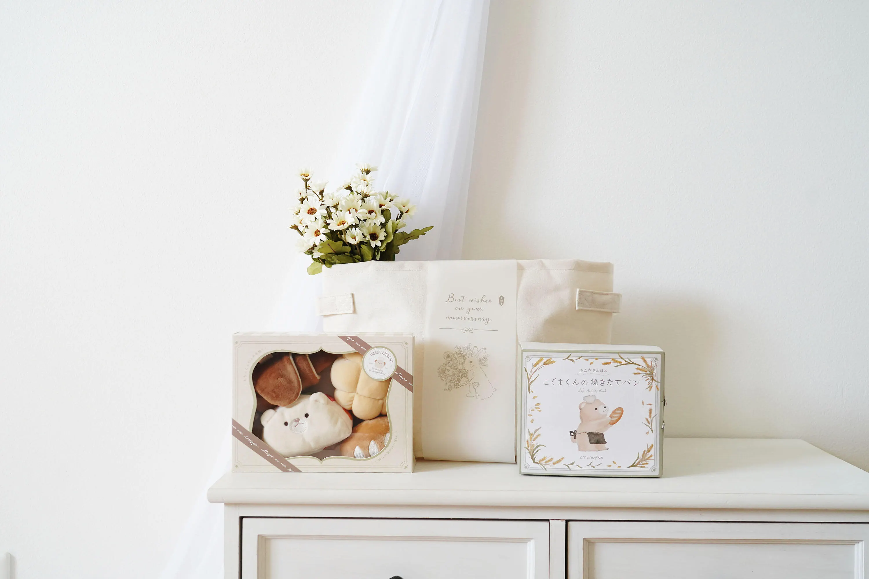 やさしい色、ふんわりした素材、贈り物にふさわしい佇まい──