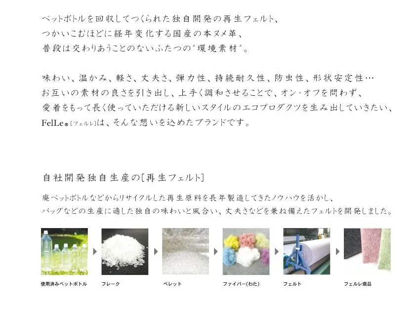 ・厚口の再生フェルト素材で、中身を守る機能性に加え、大きさのわりに軽量です。