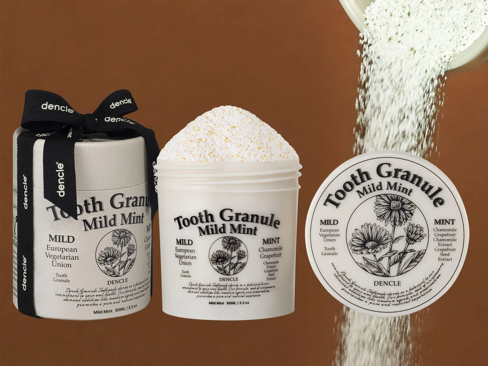 「デンクル トゥースグラニュール」は歯科工学を元に設計された韓国のオーラルケアブランド DENCLE(デンクル)により新開発された完全無水のヴィ―ガン歯磨き粉。