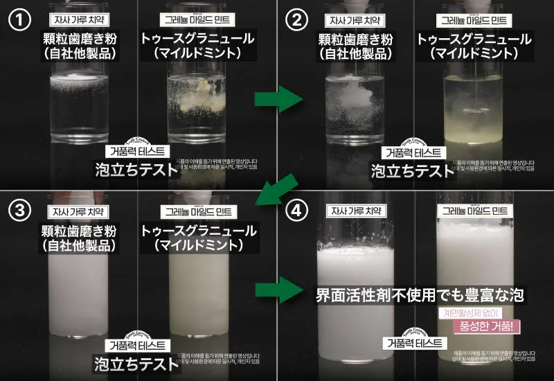 口臭成分を97%減少させた、独自製法グラニュールは泡立ち良く綿菓子のような不思議な使用感。