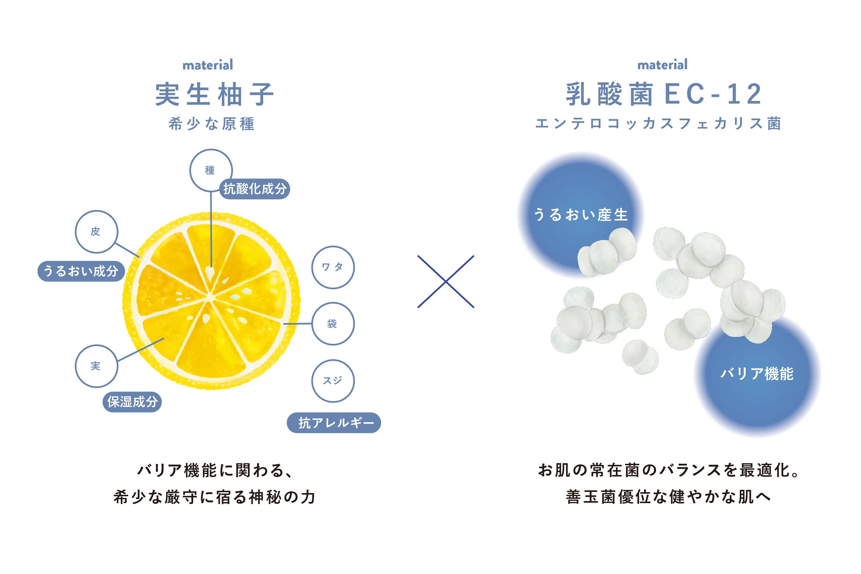 また、製品作りには「品質と共に心地よく、感性に響くもの」を徹底的に追求しています。大阪・箕面市で育まれる希少な天然成分「実生ゆず」を活用し、肌に優しいだけでなく、持続可能で環境にも配慮した原料を使用。