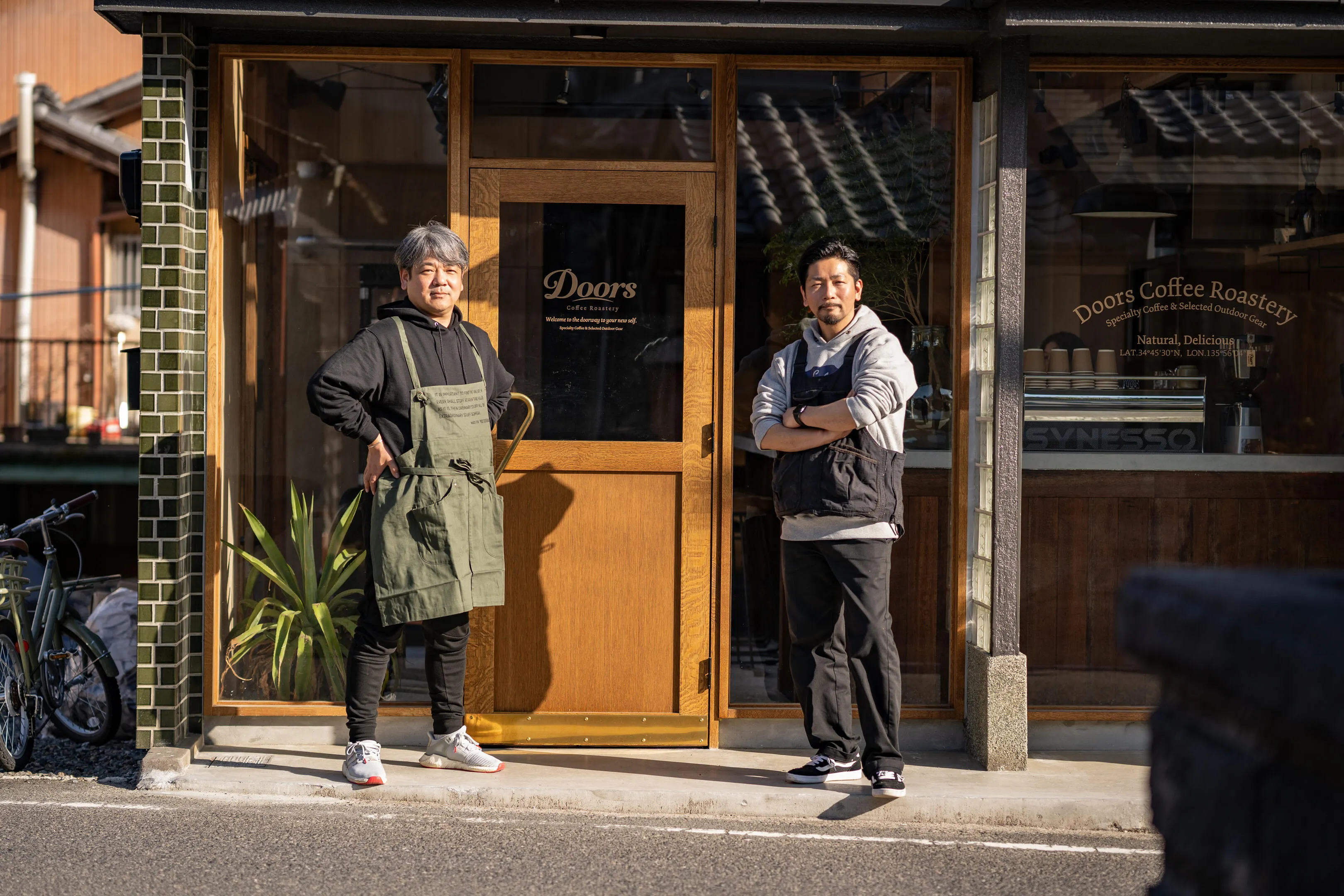 新鮮なお野菜や果物を使⽤し調理法にもこだわるカフェ「ASAKARA GOOD STORE」などを運営し、⽇々の⽣活に⽋かせない⾷卓を彩るための”コト”を提案する弟と、イベント制作会社として企画から実施運営までオールインワンでサポートしている兄。この⼆⼈が共通して愛してやまないアウトドアを通じ、それぞれの事業で培った経験を活かしてコラボレーションが実現したDoors Coffee Roastery。 僕たちが持つ⼈に優しい料理と、⼈をあつめ楽しんでもらうための知恵を使い、来ていただいた⼈たちに⼼から満⾜していただくためのコーヒースタンドが京都の笠置町にあります。⼈や⾃然への感謝の気持ちを持って扉を開け、皆さまのお越しを⼼よりお待ちしております。