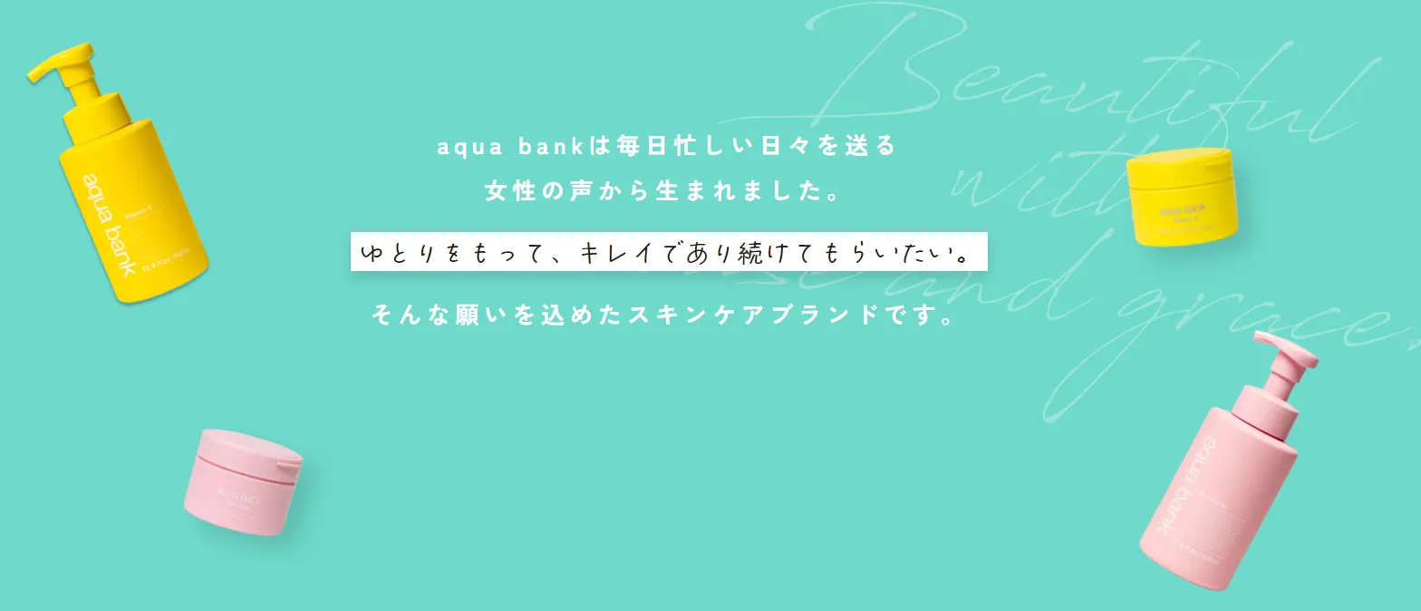 aqua bankは毎日忙しい日々を送る女性の声から生まれました。 ゆとりをもって、キレイであり続けてもらいたい。そんな願いを込めたスキンケアブランドです