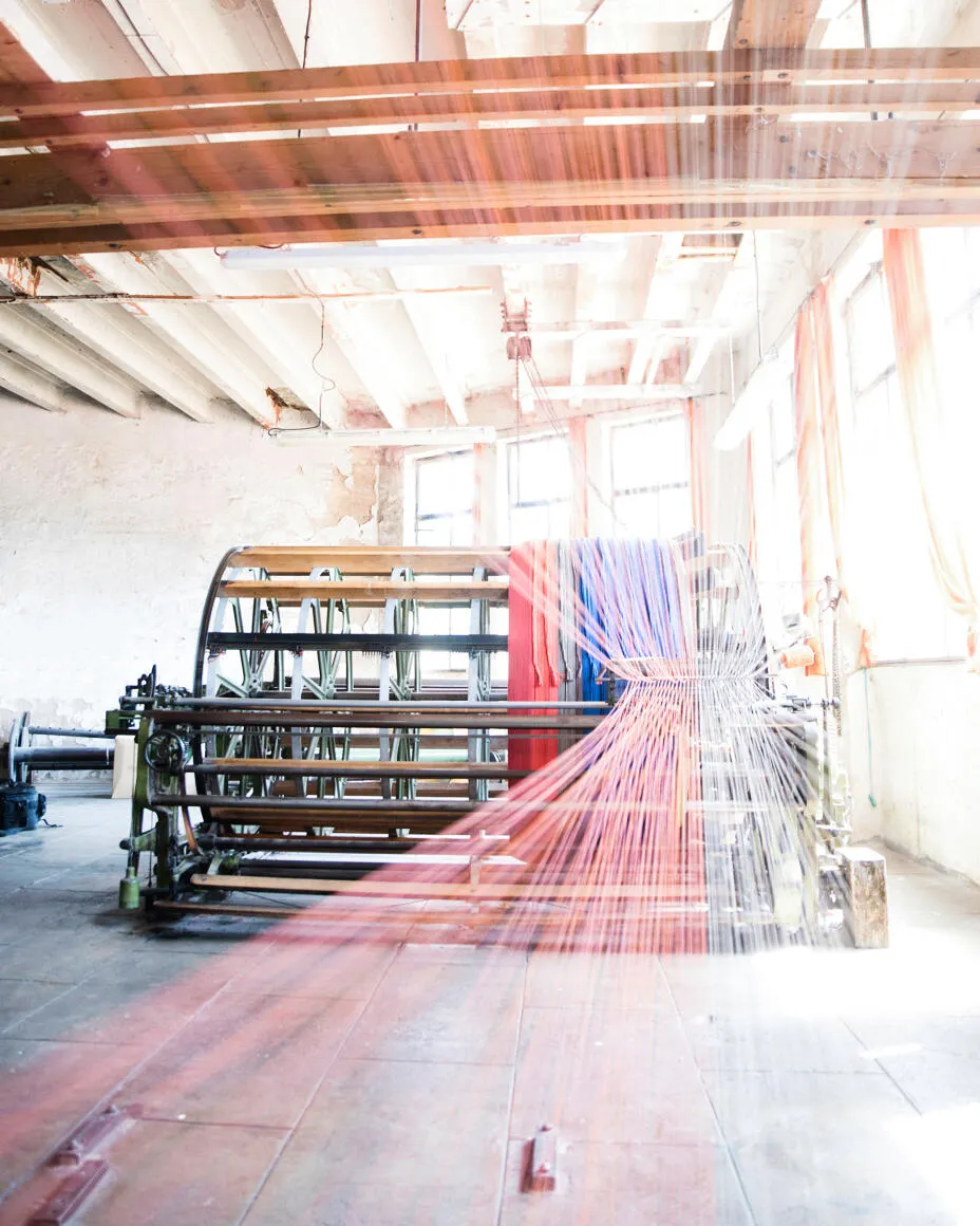 そんな「伝統織物を後世に残したい」「カタランの魅力的な文化を世界中に伝えたい」という想いから、今もなお、当時のままの古い織機、こだわりの糸を使い、芸術的な”ソレイユストライプ”を表現し続けています。