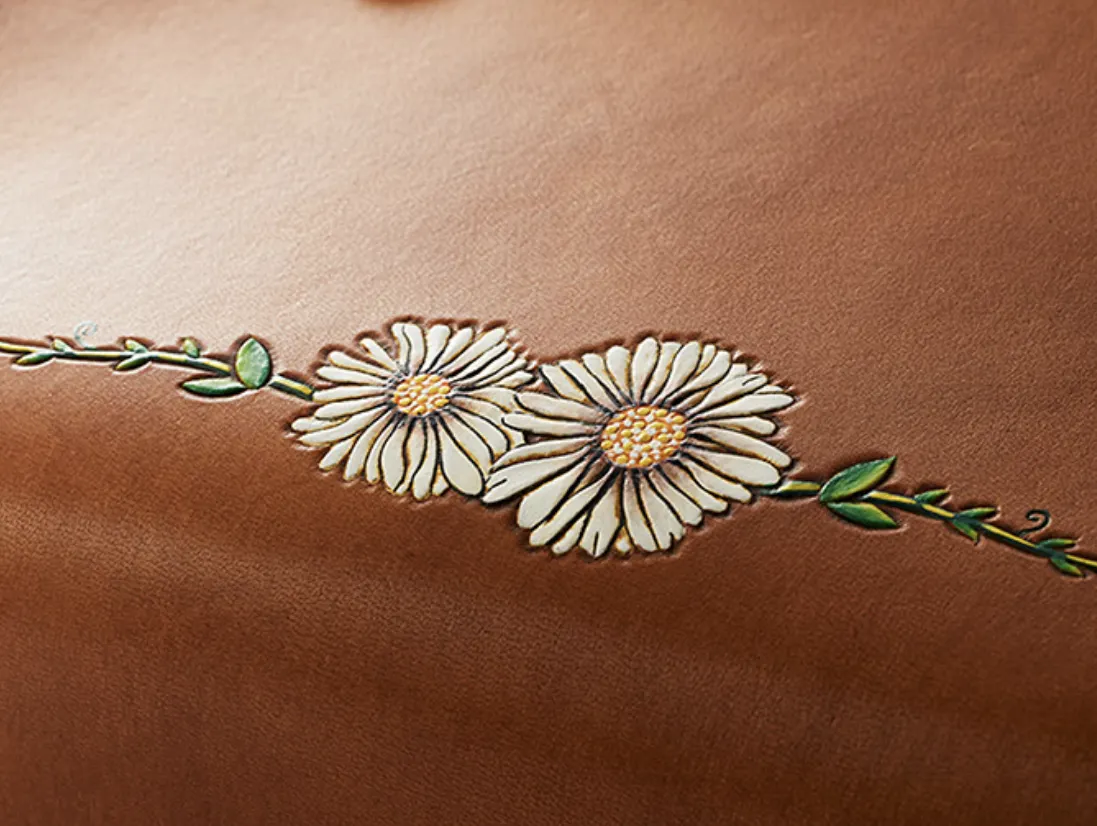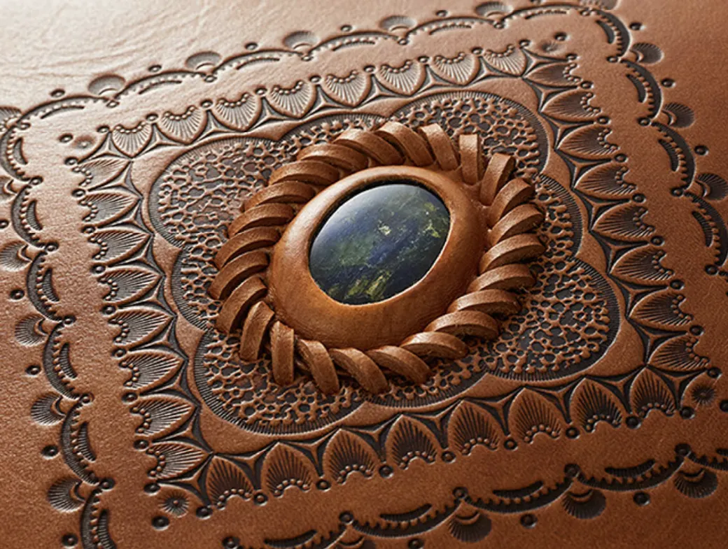 染色、縫製まですべて手作り。熟練の職人が染色し手彫りで装飾を施しながら1点1点作るバッグの美しさをご覧ください。