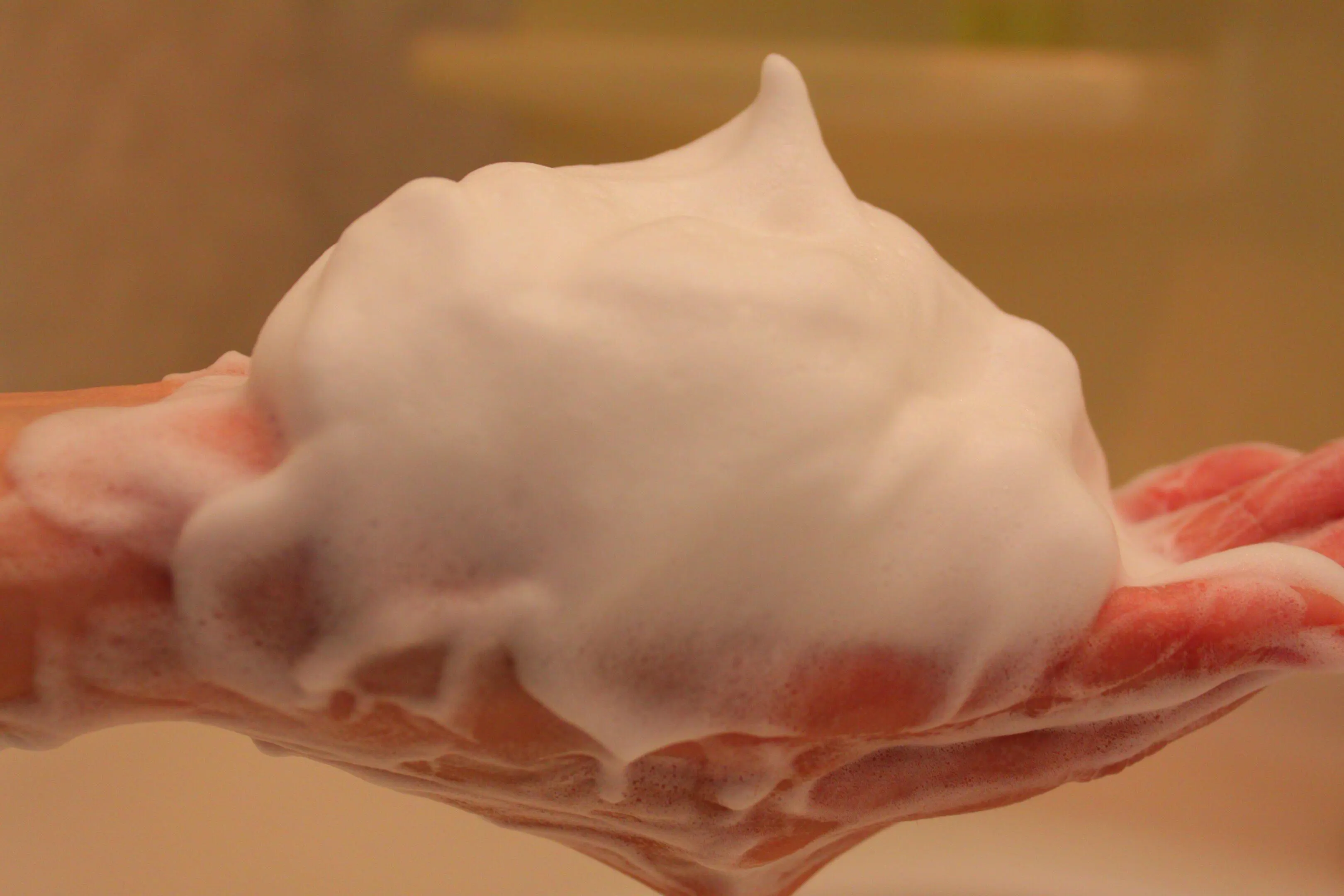 泡立てネットを使って泡立てると、もっちりとした弾力のある泡になります。
