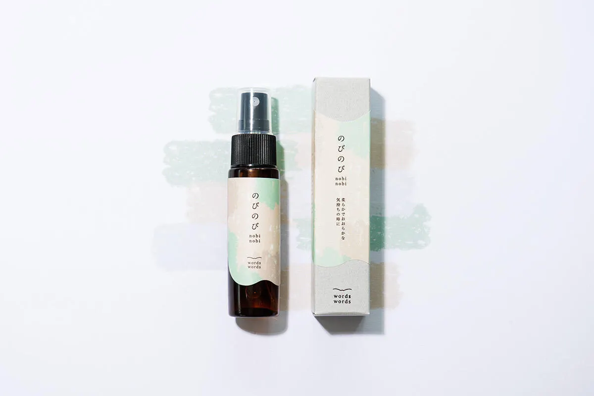 words words シリーズの「のびのび」は他の香りに比べて甘い香りをメインにブレンドしています。そして香りの女王といわれるローズも使っています。時間の経過とともに上品で芳醇な香りへの変化をぜひお試しください。女性はもちろん、男性にも好評な香りです。