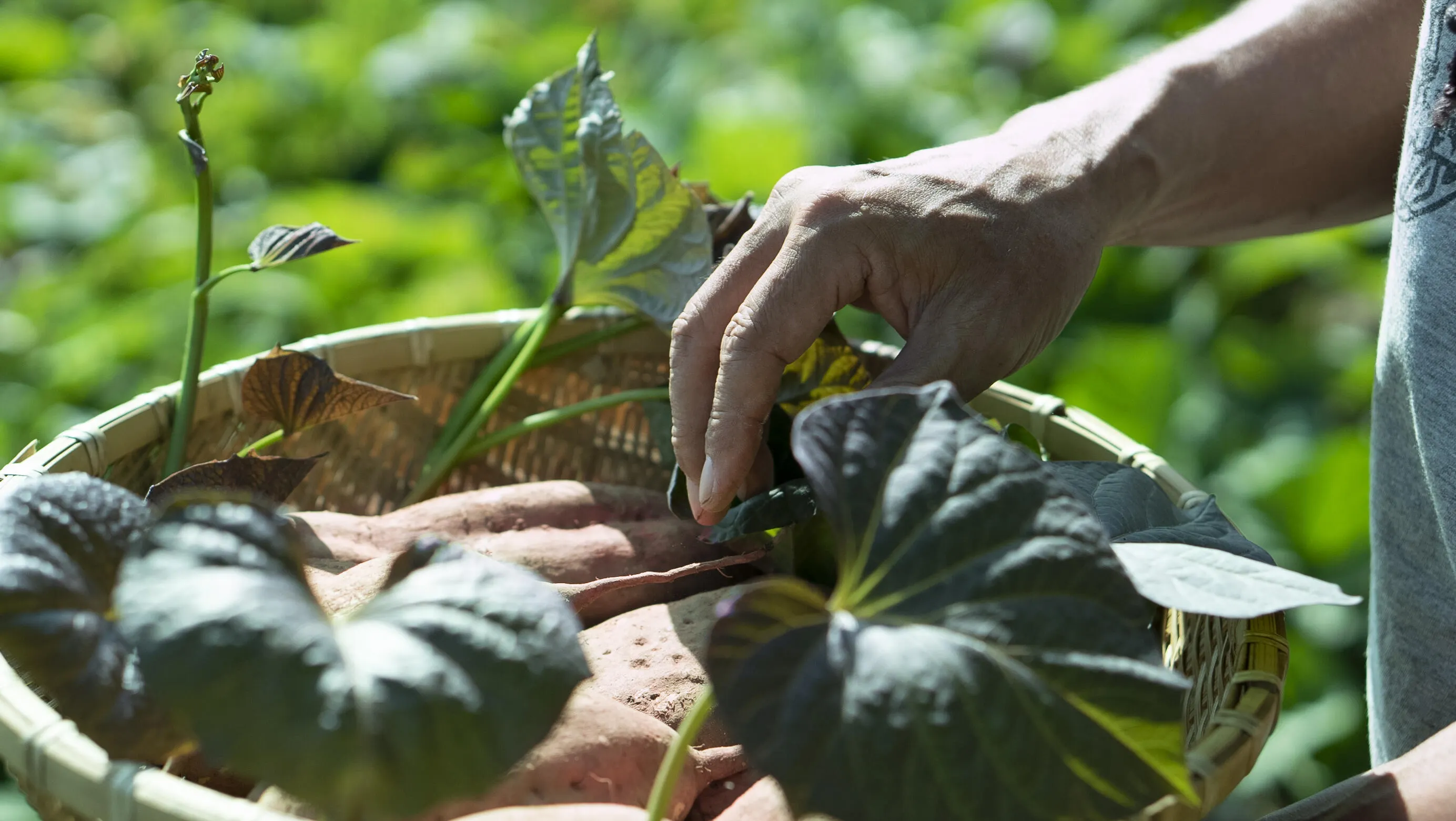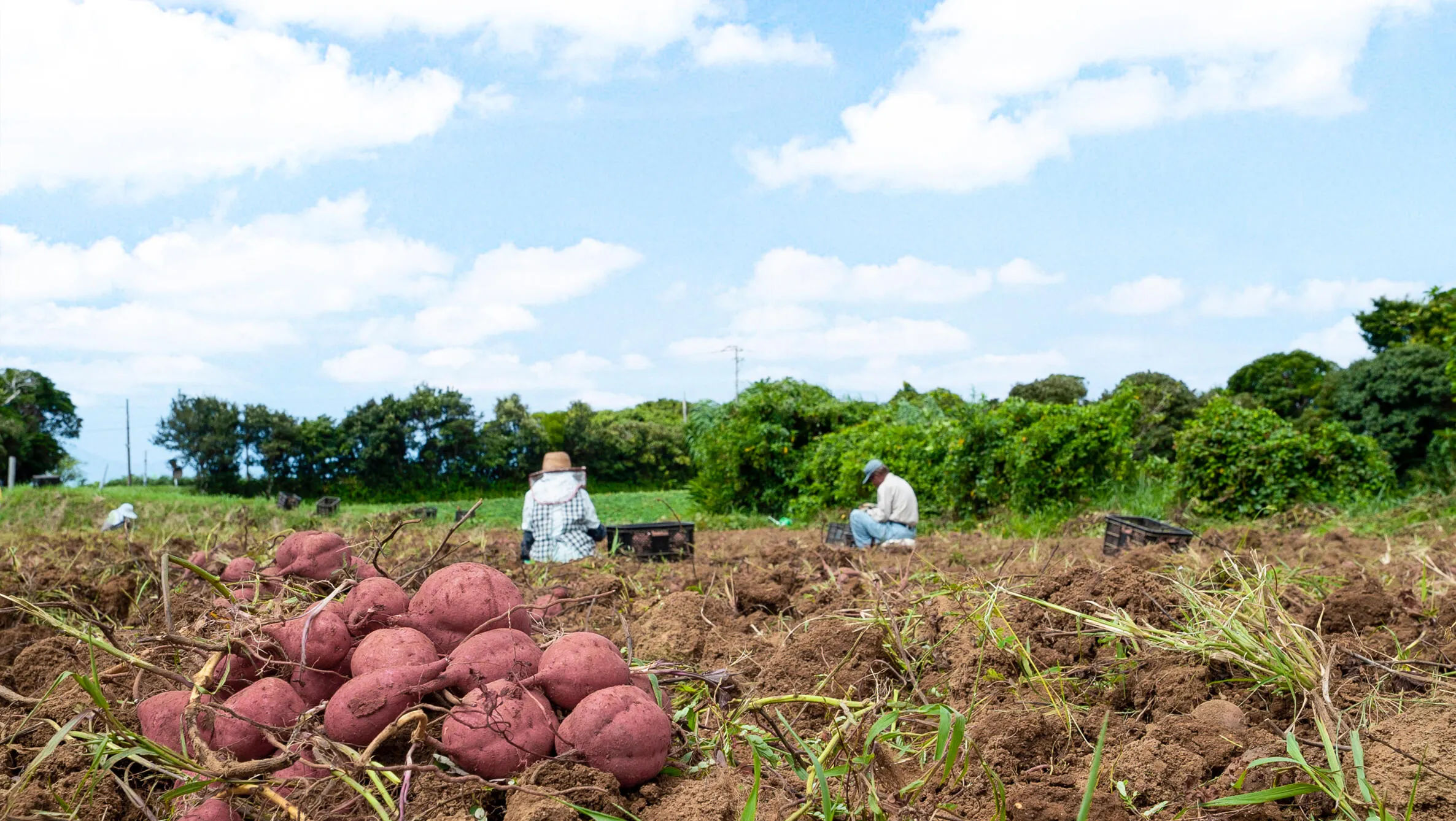 tanecoの安納芋をつくっているのは、厳選した契約農家。畑は種子島のなかでも小さいほうですが、そのぶん、一つひとつの芋をていねいに育てています。とくにこだわっているのは、丸みのあるカタチ。コロンとかわいく、最後のひと口までおいしい安納芋をつくっています。