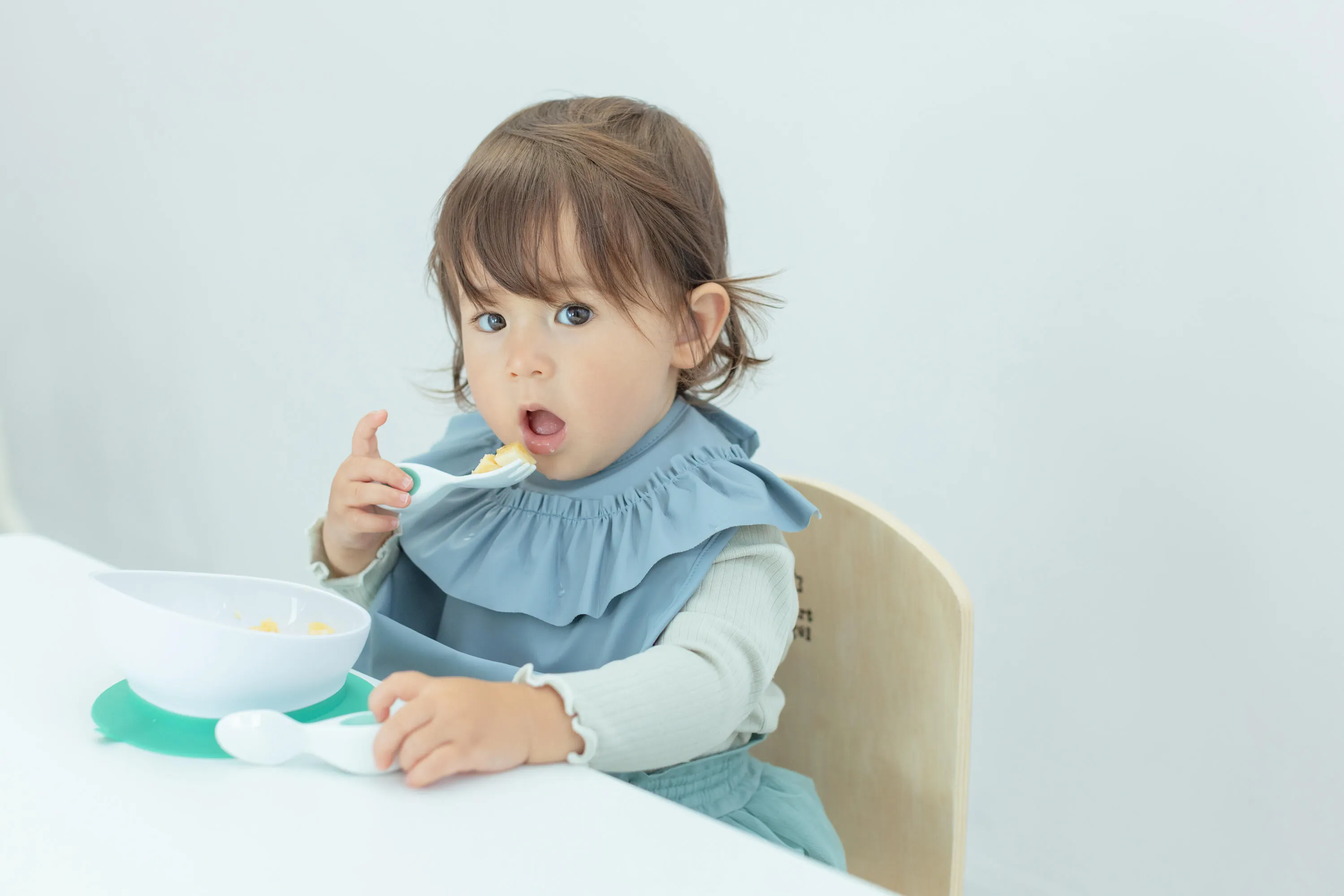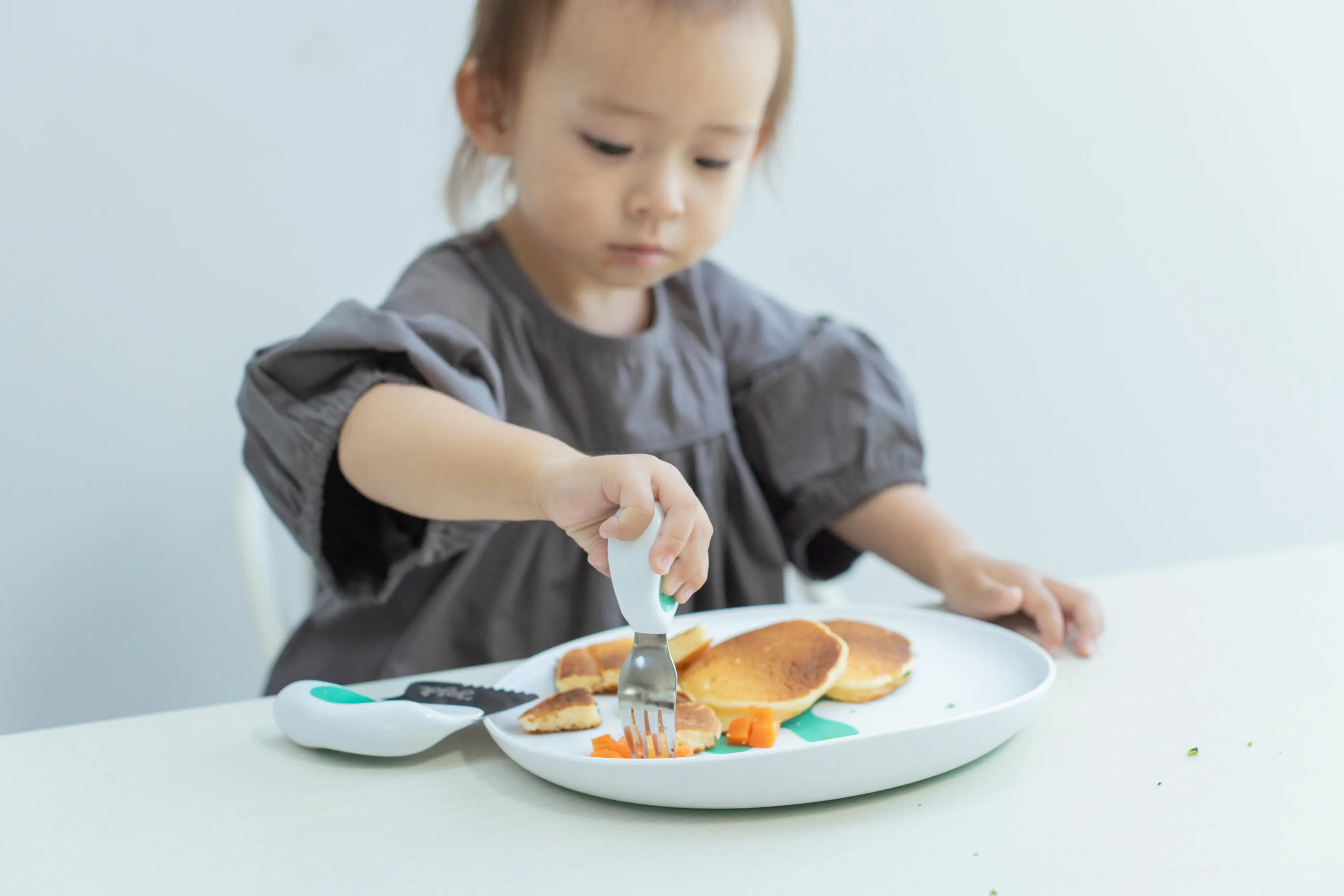 人間工学に基づいた独自設計で、1歳からの「自分で食べる」を応援するカトラリーです。従来の子ども用カトラリーとは一線を画す握りやすいハンドルと、適切な重さのバランスで、小さな手でも扱いやすく設計されています。